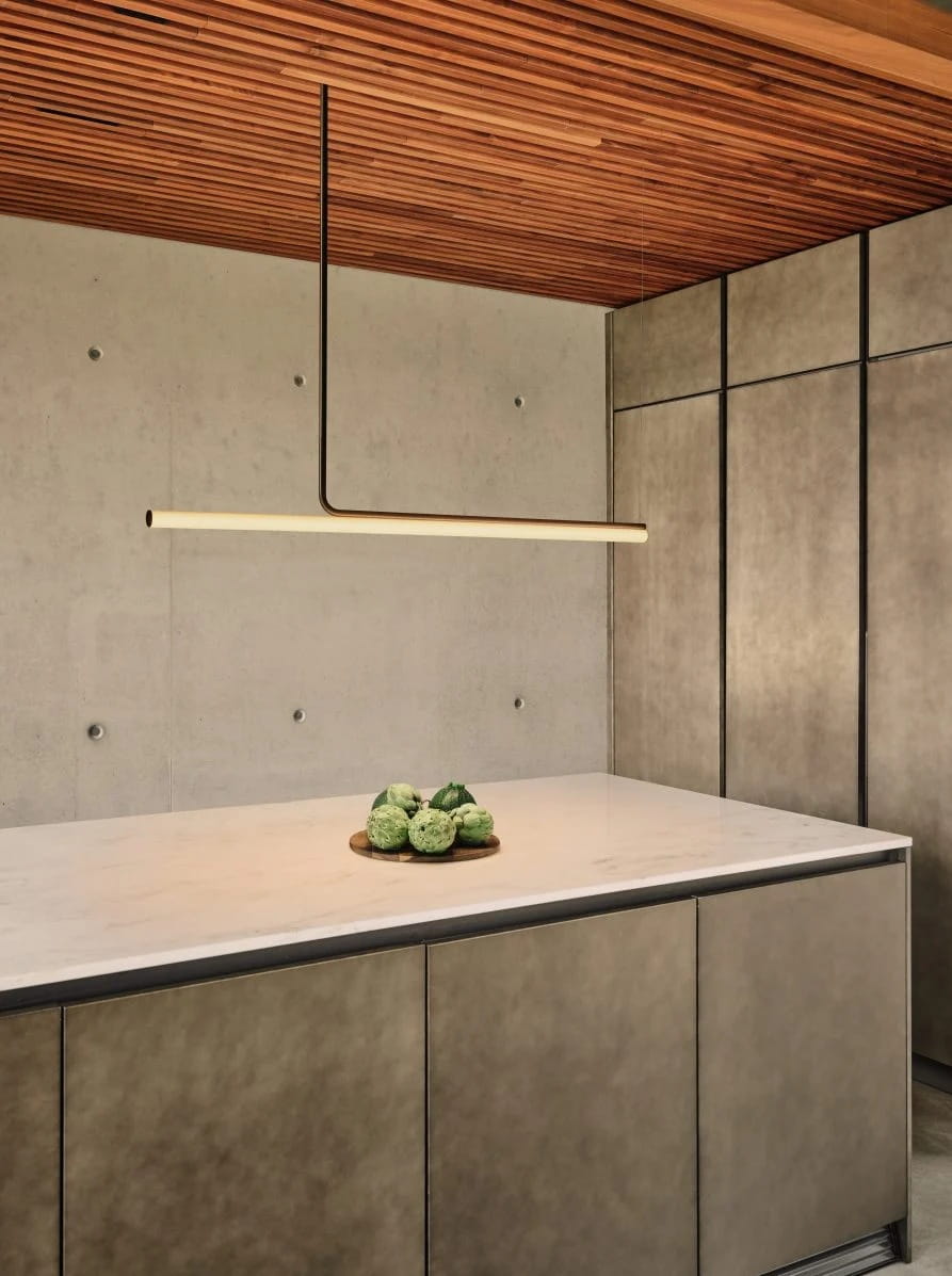 Lampa ma długość 120 cm i standardową wysokość 26,6 cm, z możliwością regulacji poprzez zastosowanie dodatkowych przedłużeń 40 cm lub 60 cm. Dzięki temu można precyzyjnie dopasować jej położenie względem sufitu oraz uzyskać zamierzony efekt wizualny. System Ambrosia dostępny jest również w innych długościach – aż do 315 cm – co pozwala zachować spójność aranżacyjną w większych projektach. W zestawie znajduje się prostokątna rozeta sufitowa.