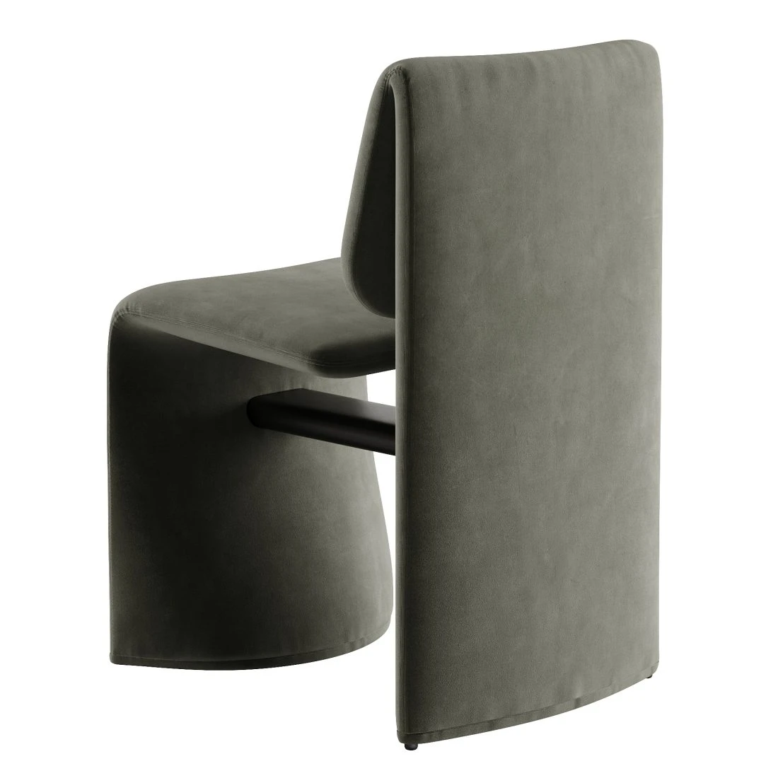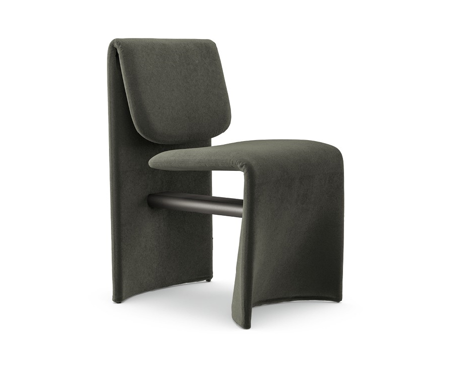 Oparcie i siedzisko tworzą dwie odrębne, wygięte linie, połączone metalową rurką. Przestrzeń między nimi zmniejsza wizualny ciężar mebla, wprowadzając poczucie równowagi i płynności. Nie jest to jednak wyłącznie wybór estetyczny – taka konstrukcja została stworzona z myślą o komforcie: forma naśladuje kształty ludzkiego ciała, zapewniając wygodę i naturalne podparcie.