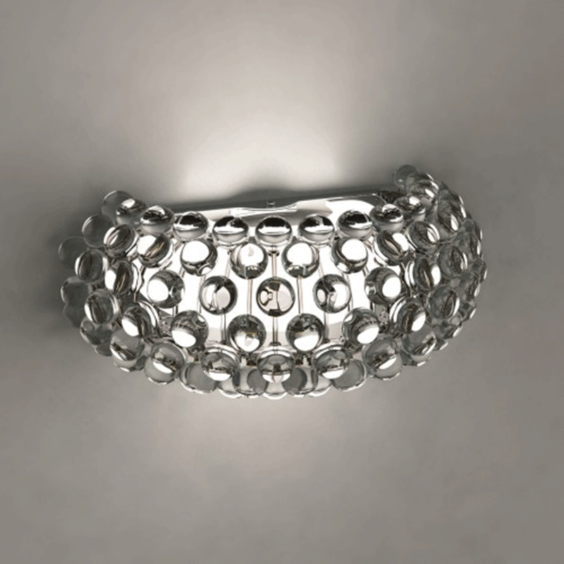 Jej charakterystyczną konstrukcję tworzą dziesiątki transparentnych kuleczek wykonanych z ekologicznego tworzywa, które niczym kryształowe fasety otaczają źródło światła. Dzięki temu lampa spektakularnie rozprasza światło, tworząc efekt migotania i subtelnych refleksów w przestrzeni.