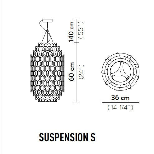 - Dostępne wymiary: Lampa dostępna jest w trzech rozmiarach, co pozwala na dopasowanie jej do różnorodnych przestrzeni: S: 36 cm (H: 60 cm), M: 50 cm (H: 85 cm).