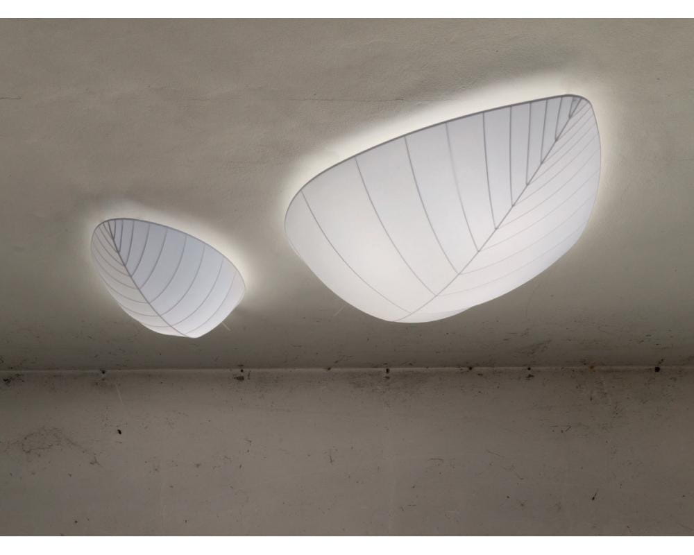 lampa w formie liścia. rama wykonana z metalu, abażur z białej lyckry