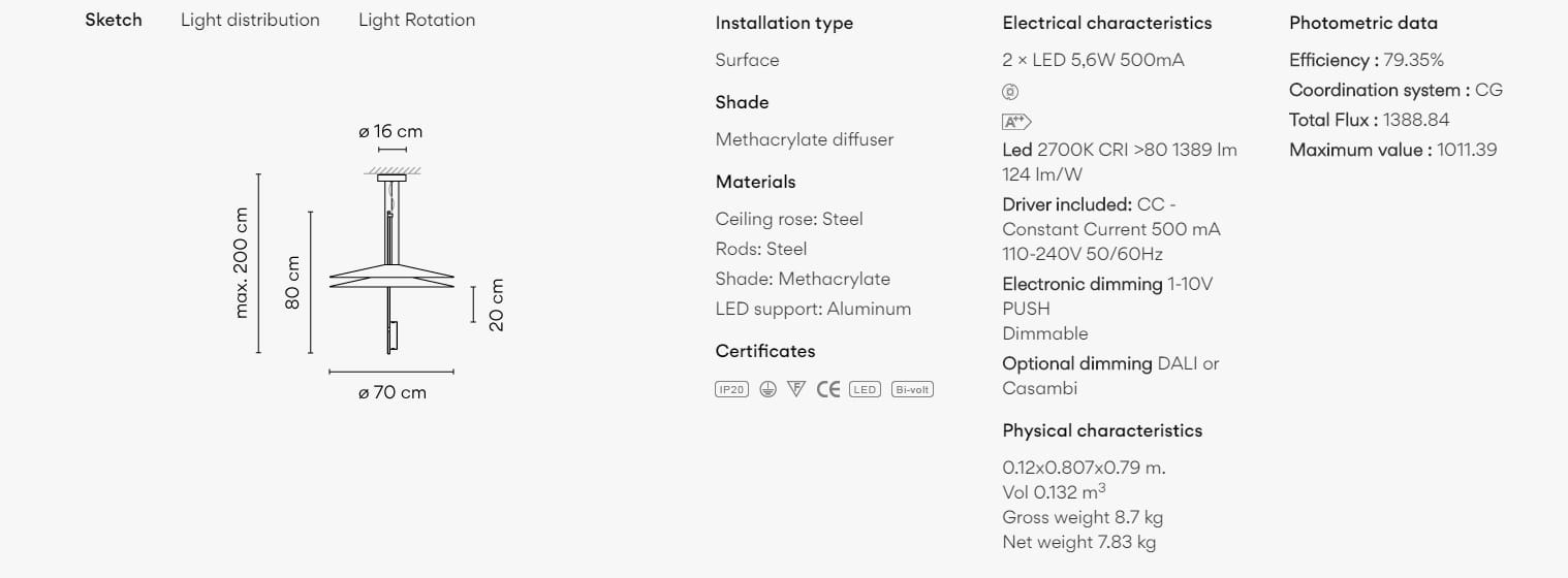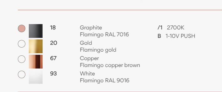 Projektant Antoni Arola stworzył kolekcję lamp Flamingo dla Vibia. Kolekcja lamp wiszących, które zapewniają oświetlenie otoczenia przez termoplastyczny półprzezroczysty dyfuzor, który działa jak światło punktowe dzięki swojemu źródłu światła LED (wymienny )