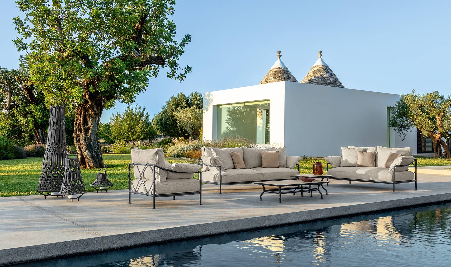 Fotel wypoczynkowy Capri renomowanej włoskiej marki Talenti to elegancki i komfortowy mebel, idealny do stref relaksu. Metalowa konstrukcja nadaje mu nowoczesny charakter i zapewnia trwałość oraz stabilność użytkowania. Obszerne, miękko wyściełane poduszki gwarantują wysoki poziom wygody, zapraszając do wypoczynku. Fotel doskonale komponuje się zarówno z sofami z tej samej kolekcji, jak i z innymi elementami wyposażenia wnętrz, wnosząc do każdej przestrzeni elegancję i przytulność.