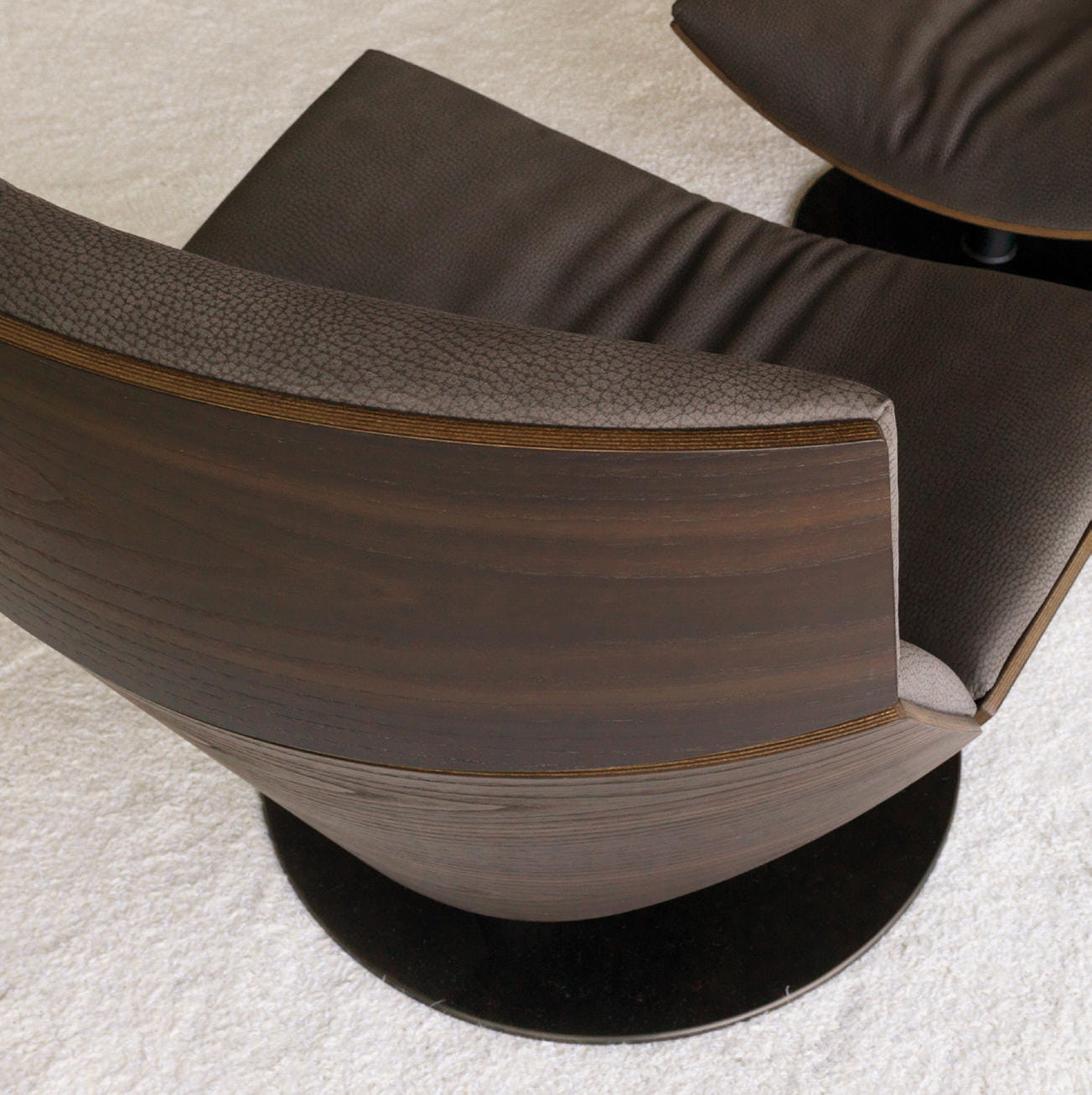 Wypoczynkowy Fotel kara Desiree wykonany jest z metalowo-drewnianej ramy, skórzanej tapicerki i obrotowej, metalowej podstawy. Użycie pianki poliuretanowej sprawia, że jest to niezwykle miękki oraz wygodny mebel. Nadaje się doskonale do salonu lub gabinetu. Komfort jego użytkowania podnosi jeszcze opcja w postaci podnóżka, który może być też używany jako pufa.