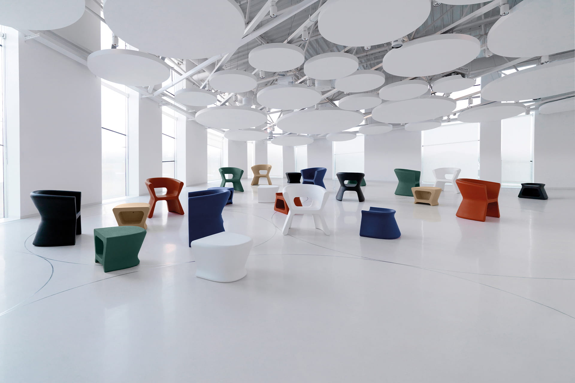 Charakterystyczny, ikoniczny kształt elementów kolekcji wyróżnia się płynnym, spójnym designem – przednia część obiektu harmonijnie przechodzi w tylną, tworząc wizualny dialog pomiędzy poszczególnymi elementami serii.Kolekcję uzupełniają donice, stoły oraz wszechstronne krzesła, które dodają wnętrzom i przestrzeniom zewnętrznym awangardowego, nowoczesnego charakteru. Wszystkie elementy wykonane są z odpornej na warunki atmosferyczne, formowanej rotacyjnie żywicy polietylenowej, co czyni je idealnym wyborem zarówno do luksusowych hoteli, jak i nowoczesnych domów prywatnych.