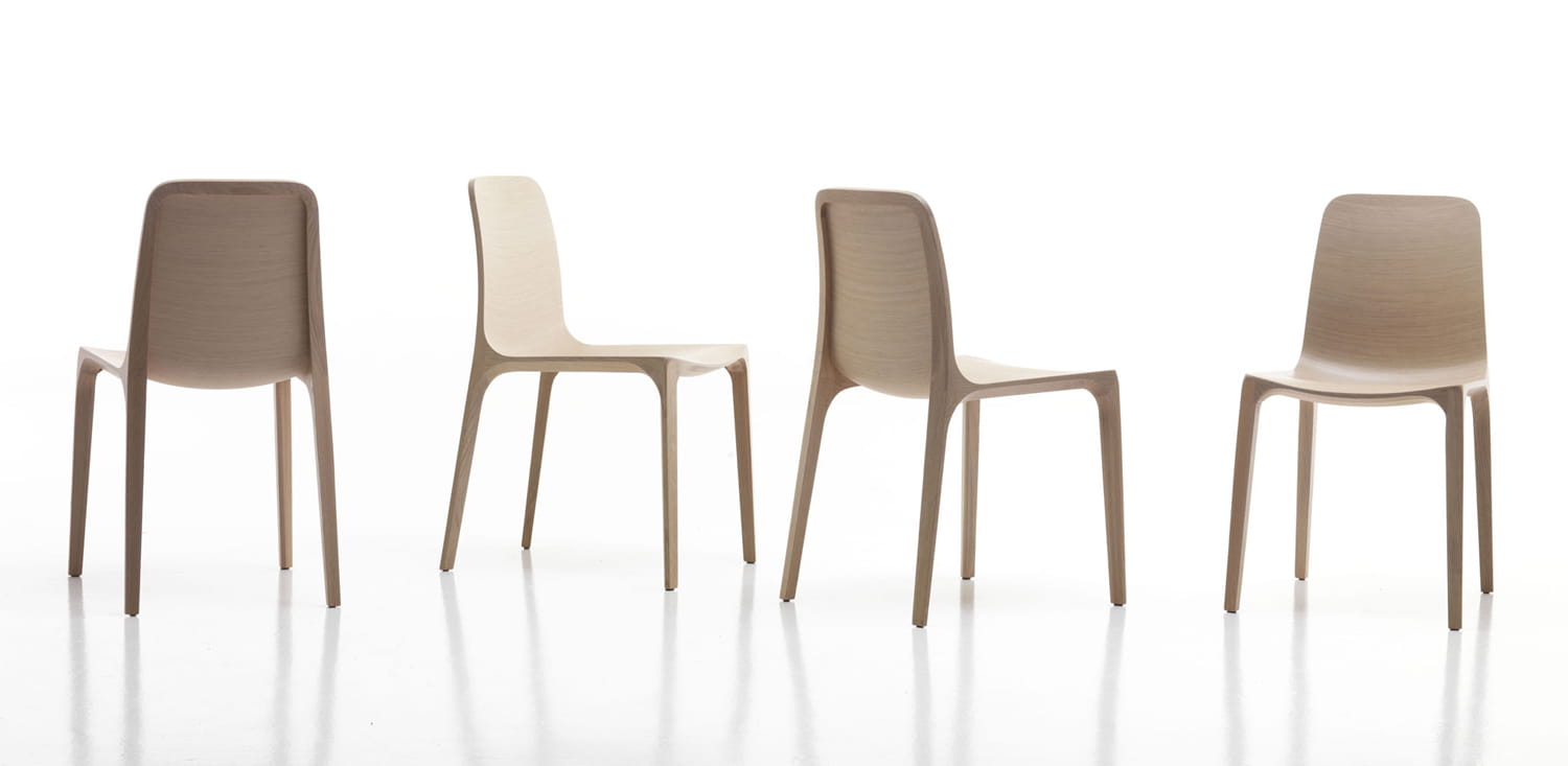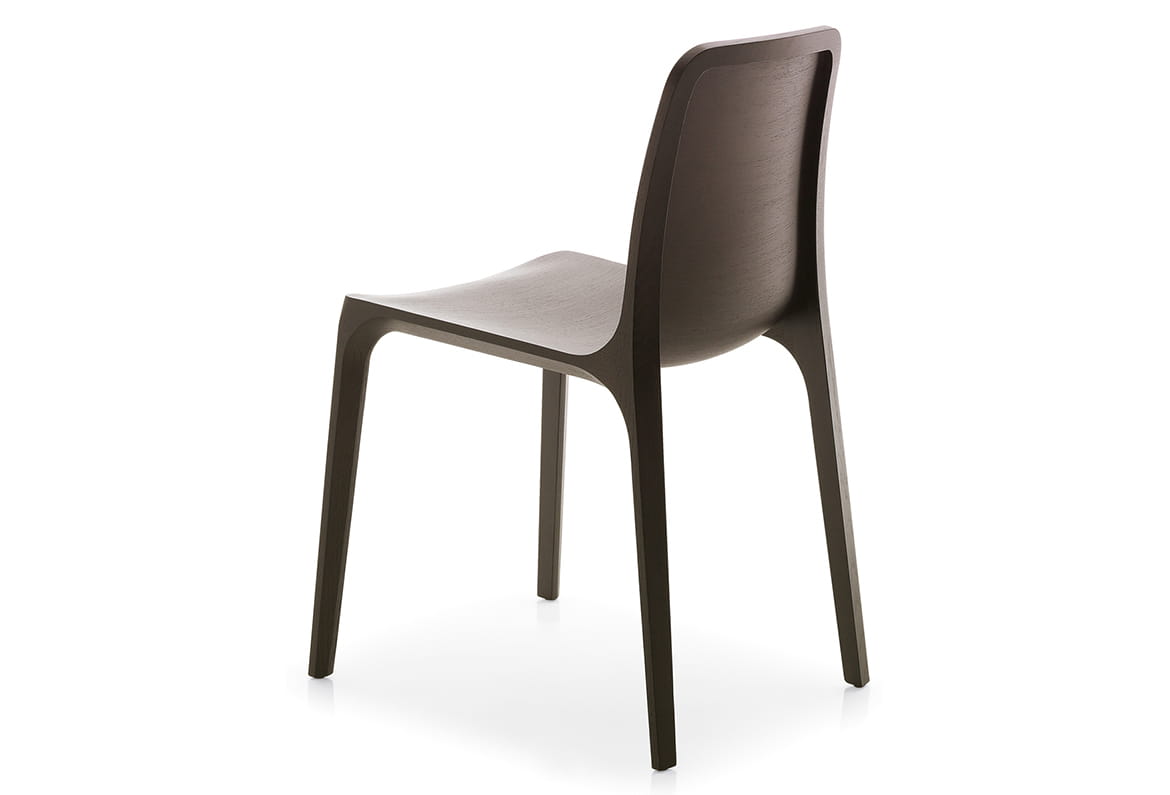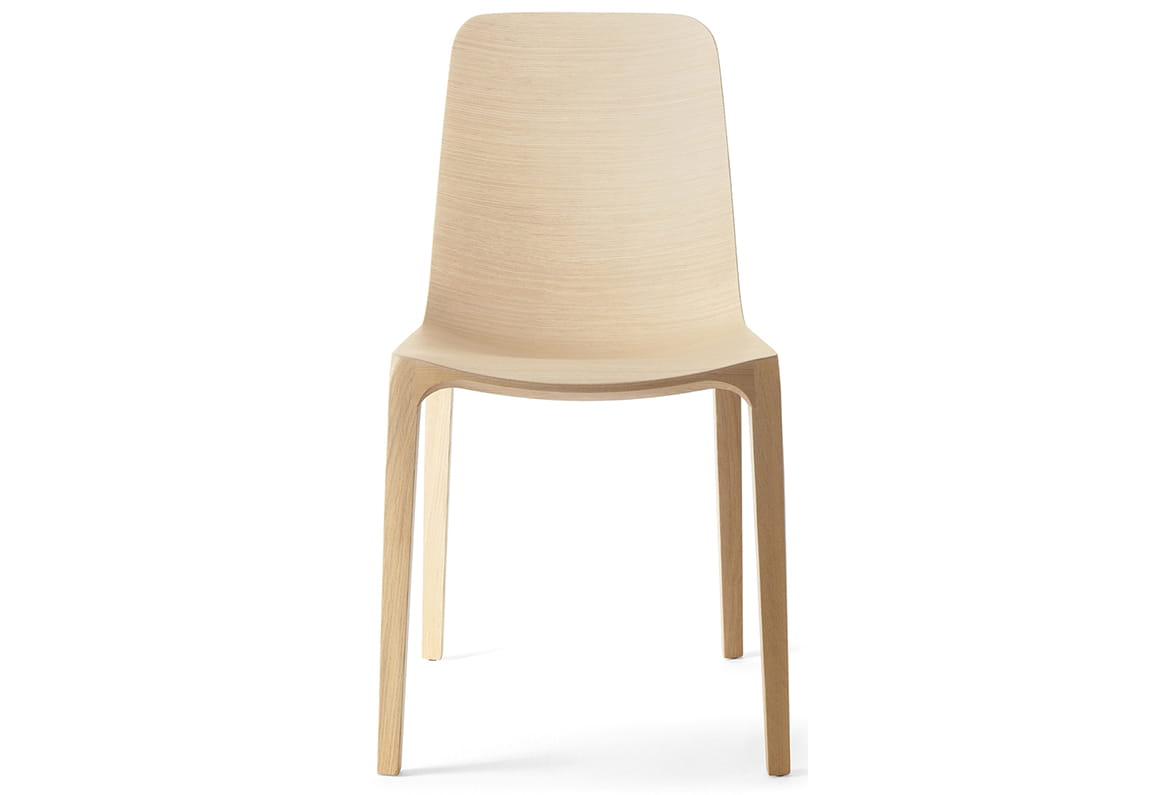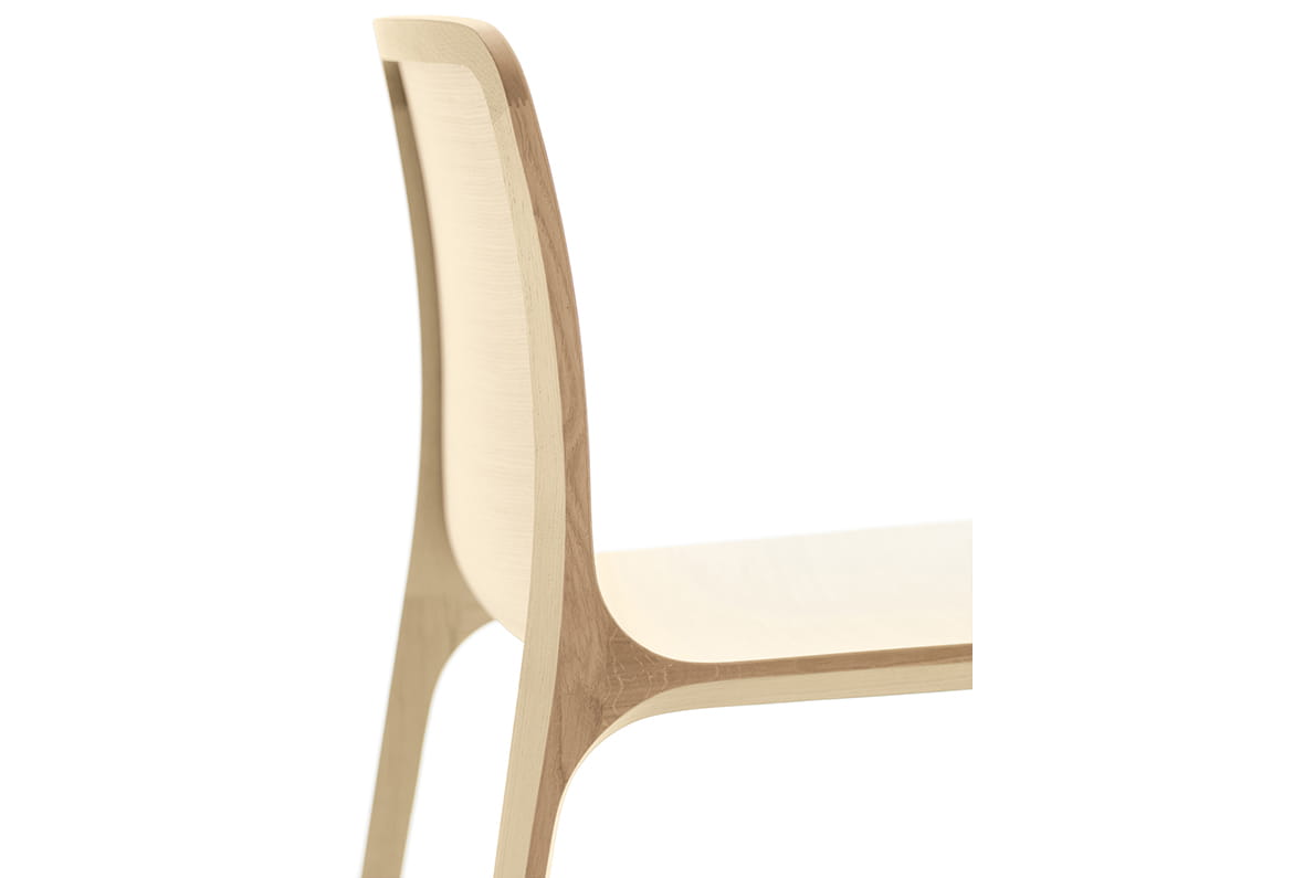 Swój urok krzesło zawdzięcza cienkiej, a zarazem bardzo wytrzymałej dębowej ramie, połączonej z giętą sklejką pokrytą warstwą trójwymiarowego forniru.