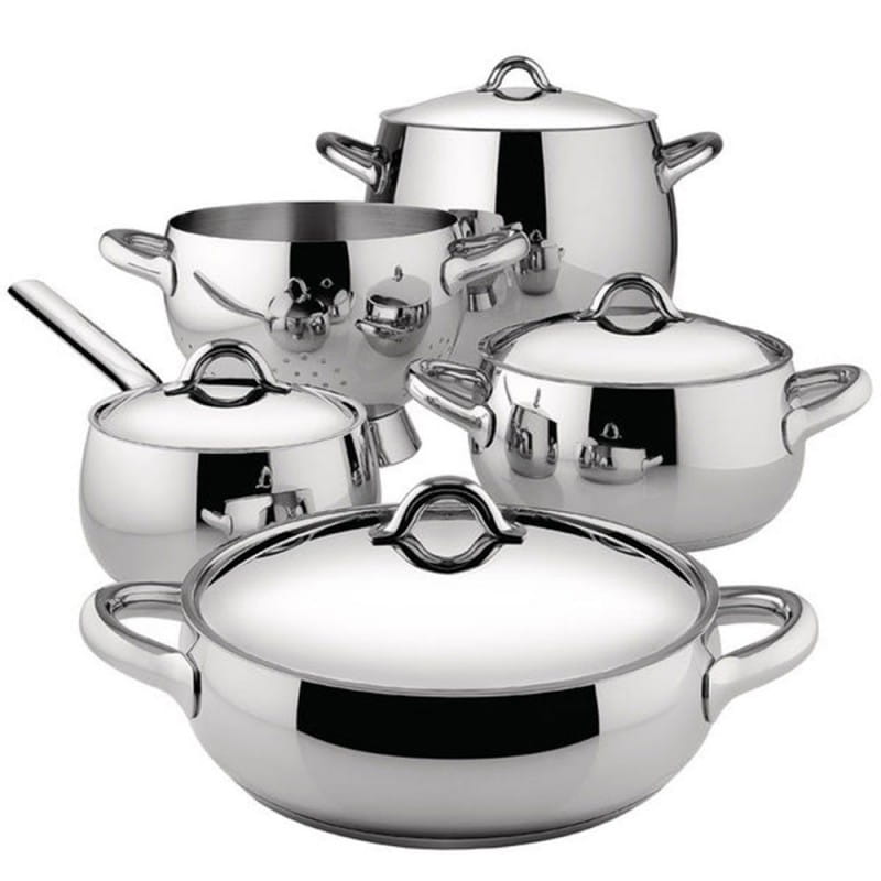Kolekcja Mami, stworzona w 1999 roku, wykonywana jest z najwyższej jakości stali nierdzewnej 18/10, zapewniającej trwałość, odporność na korozję oraz komfort codziennego użytkowania. Grube dno, wykonane z połączenia stali i aluminium, gwarantuje równomierne rozprowadzanie ciepła i doskonałą kontrolę procesu gotowania. Wykończenie w błyszczącej stali nadaje naczyniu elegancki, uniwersalny charakter, który doskonale prezentuje się w każdej kuchni.