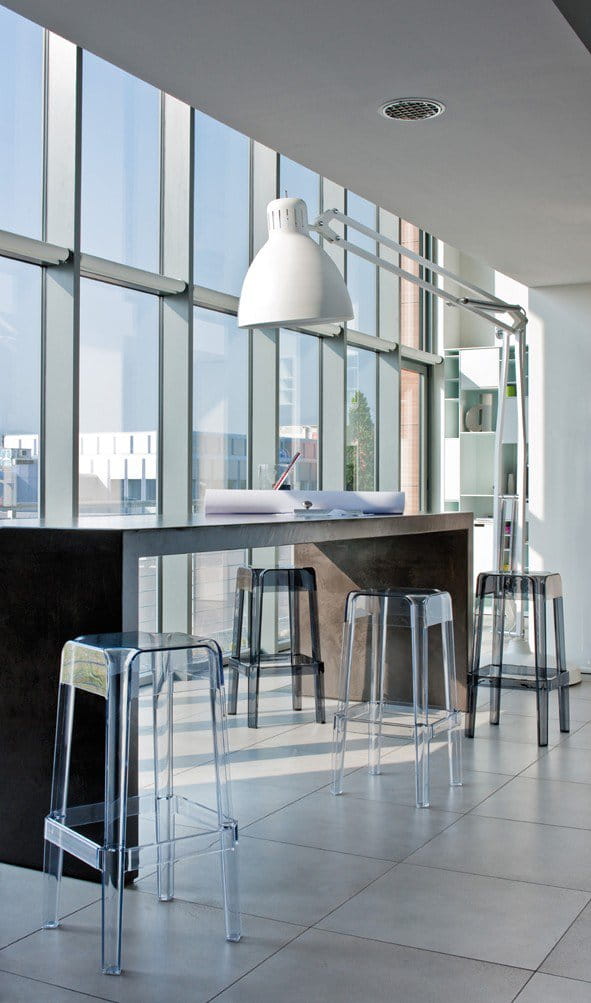 Rubik stołek barowy Pedrali w pełni wykonany z poliwęglanu, nietoksycznego materiału o optymalnych właściwościach fizycznych, odporne na wstrząsy, nie do złamania. Nadaje się do stosowania na zewnątrz.