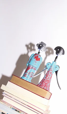 Kolorowy korkociąg Alessandro M. Liquid marki Alessi to doskonałe połączenie nowoczesnego designu i funkcjonalności. Wykonany z wysokiej jakości materiałów, zachwyca czerwono-niebieską kolorystyką, która nadaje mu oryginalny, radosny wygląd. Jego unikalna forma sprawia, że jest nie tylko estetyczny, ale także wygodny w użytkowaniu.