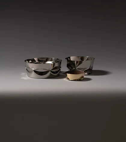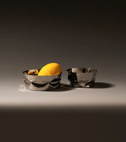 Il Tornitore Matto Compressioni od Alessi to niezwykły kosz na owoce, który z powodzeniem zastępuje tradycyjne formy, wnosząc do wnętrza świeżość i odważny akcent. Jego oryginalny kształt, przypominający zgniecioną blachę lub pomięty materiał, nadaje mu wyjątkowy, rzeźbiarski charakter.