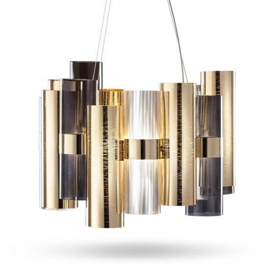 - Wyjątkowy design: Lampa została zaprojektowana w stylu retro, przyciągającym wzrok, dzięki cylindrom wykonanym z techno-polimeru w różnorodnych odcieniach nowoczesnej pryzmatycznej metalizacji.