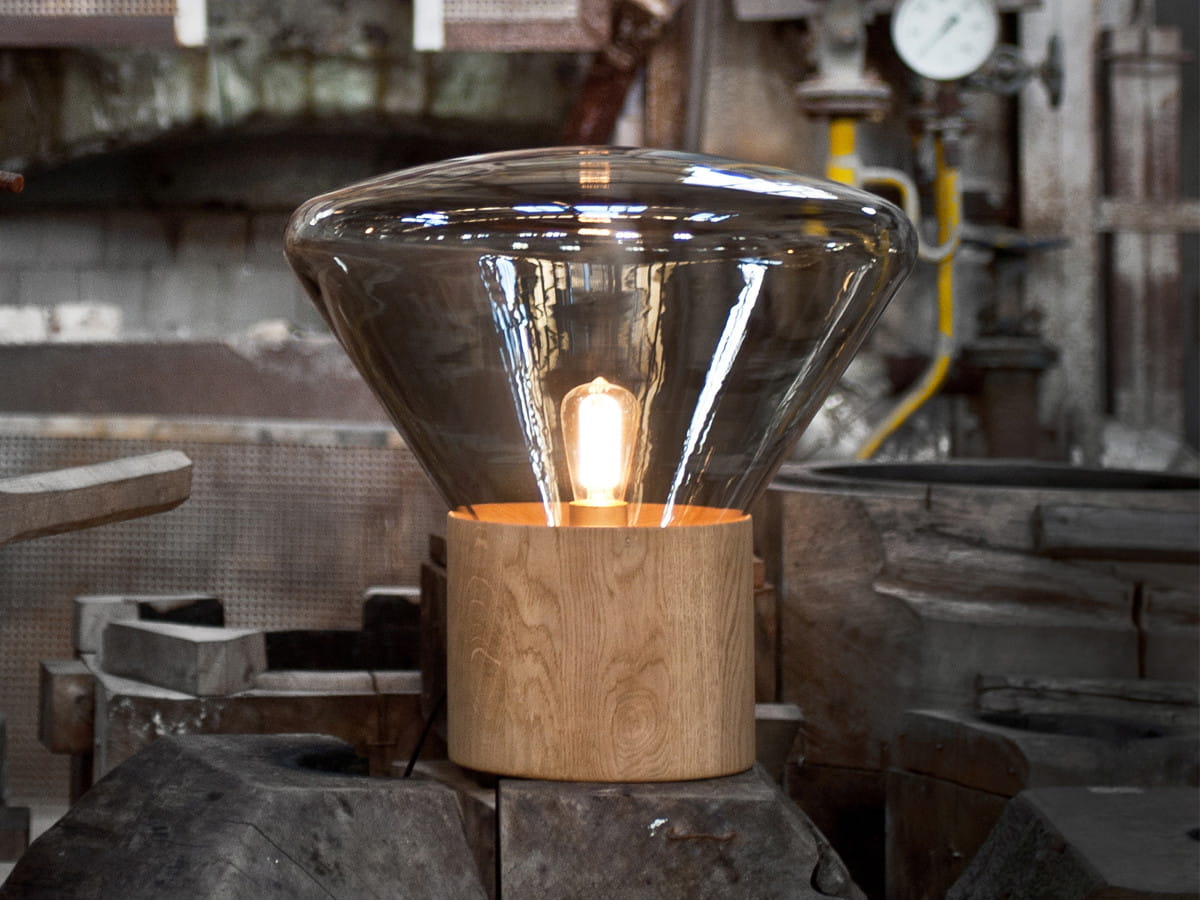 Lampa sufitowa Muffins marki Brokis. Kolesz to Ręcznie dmuchane szkło w połączeniu z elementami drewna tworzą lampę o oryginalnym designie.