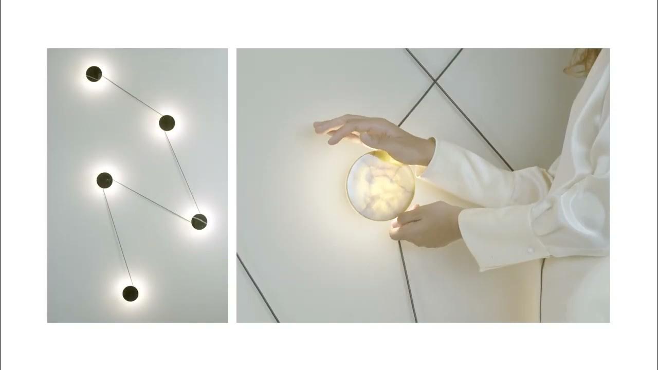 Azou to wyjątkowa lampa ścienna zaprojektowana przez Chrisa Basiasa dla marki Kundalini. Jej design opiera się na subtelnej harmonii naturalnych materiałów i nowoczesnej formy. Okrągłe dyski wykonane z onyksu lub marmuru delikatnie rozpraszają światło, tworząc ciepłą i nastrojową atmosferę. Konstrukcja z malowanego metalu nadaje całości lekkości i elegancji.