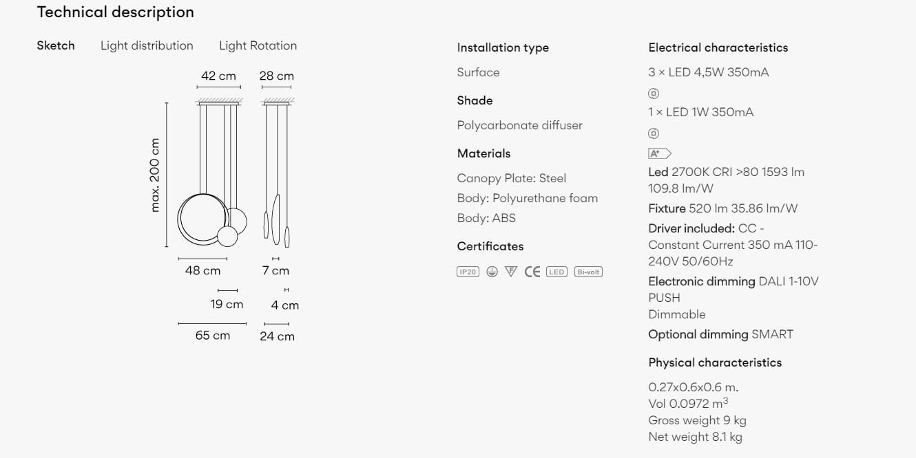 Kolekcja świateł Cosmos to design Lievore, Altherr, Molina. Kolekcja Cosmos składa się z wiszących skupisk światła, spłaszczonych form o różnych rozmiarach, które tworzą złudzenie optyczne wiszących kulek, które wydają się unosić w powietrzu.