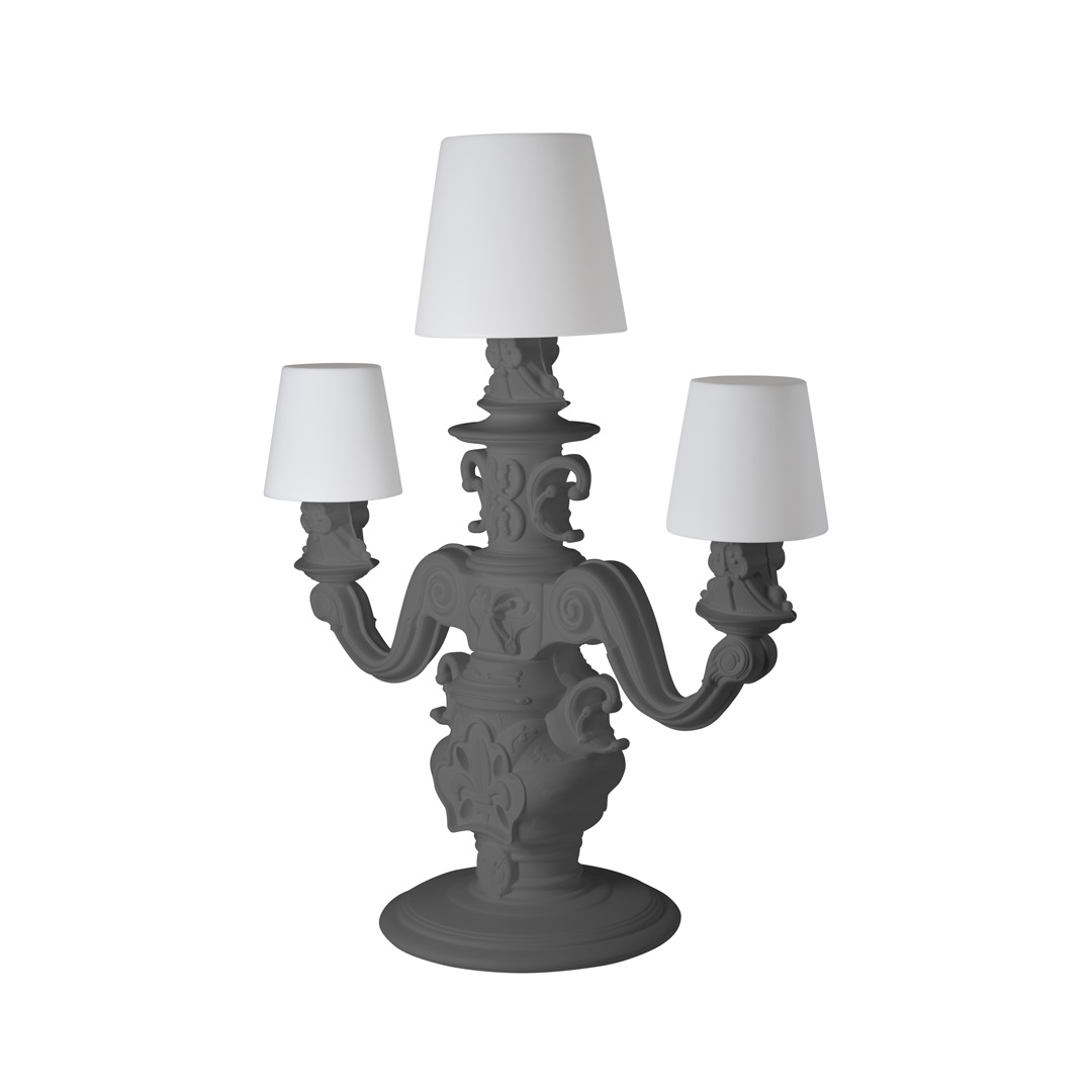 lampa podłogowa King of Love Slide z kolekcji Design of Love. King of love to reinterpretacja klasycznego baroku w uproszczonej formie. Trzy białe klosze na majestatycznej podstawie. Dzięki niebanalnemu kształtowi lampa ta jest idealna do dekoracji przestrzeni publicznych, eleganckich i klasycznych wnętrz. Wymiary : 195x90 H 235cm IP 44