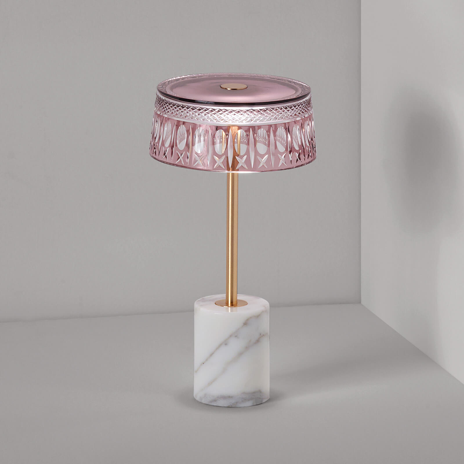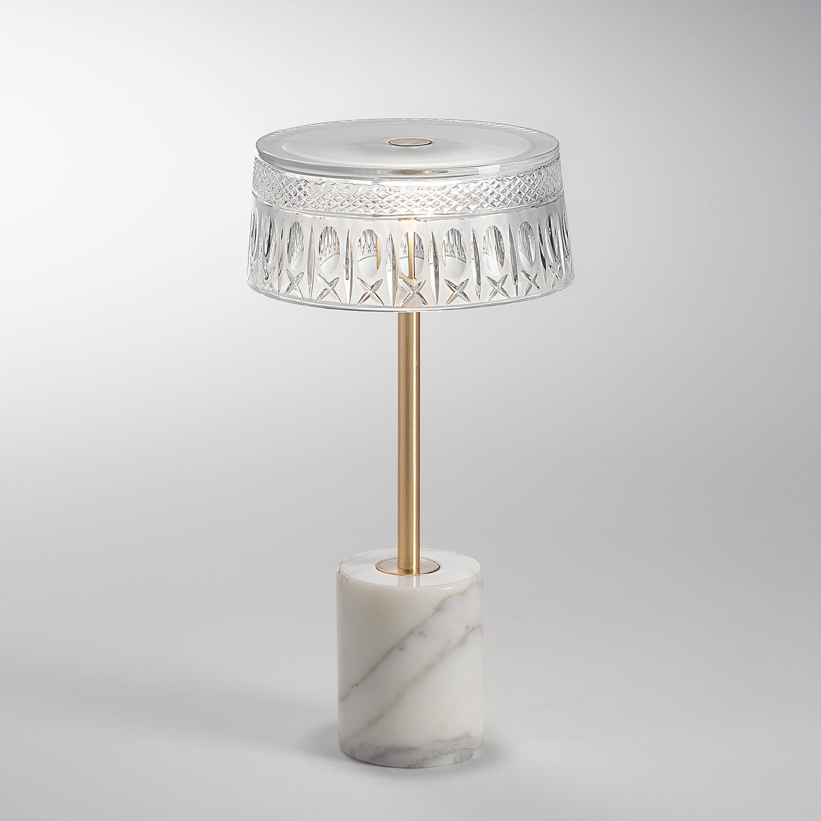 piękna , finezyjna lampa w stylistyce glamour. Podstawa ręcznie wykonana z naturalnego marmuru . kryształowy klosz ręcznie rzeźbiony osadzony na mosiężnej nodze.