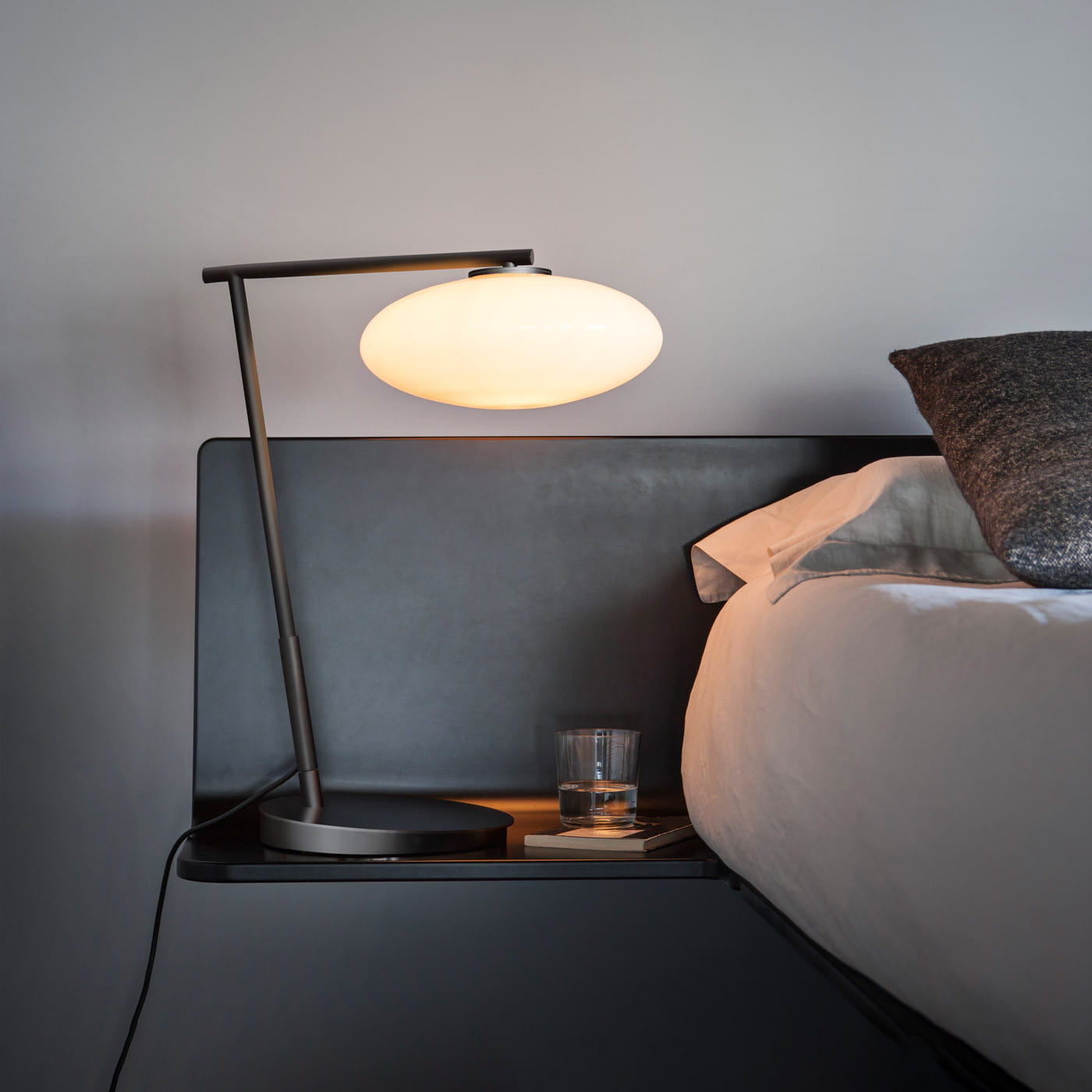 lampa stołowa Mami Penta, podstawa wykonana z metalu. szklany klosz średnica 30cm