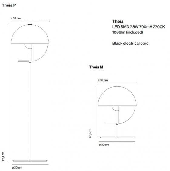 Zastosowanie energooszczędnej technologii LED gwarantuje wysoką wydajność świetlną, długą żywotność oraz niższe zużycie energii. Lampa Theia oferuje możliwość regulacji natężenia światła, co pozwala z łatwością dopasować atmosferę wnętrza do aktualnych potrzeb — od nastrojowego oświetlenia po funkcjonalne światło do czytania lub pracy.