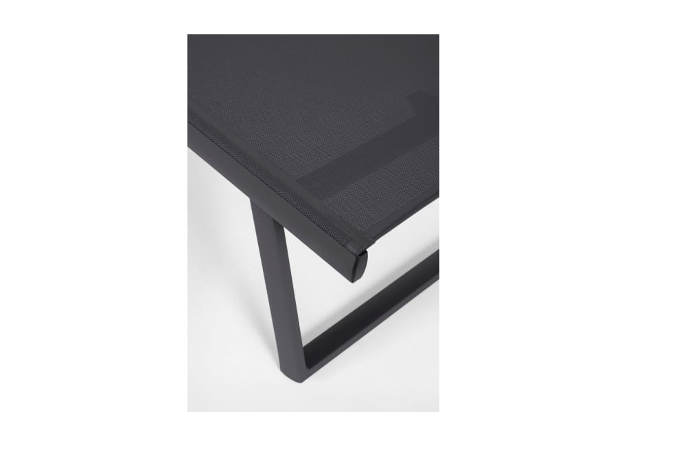 Lekka, a jednocześnie solidna konstrukcja wykonana została z aluminium pokrytego proszkową powłoką poliestrową, co gwarantuje wysoką odporność na korozję oraz trwałość przez wiele sezonów użytkowania. Siedzisko i oparcie wykonane są z wytrzymałej oraz przewiewnej tkaniny Textilene 2×1 o gramaturze 610 g/m², odpornej na wilgoć oraz promieniowanie UV, dzięki czemu fotel doskonale sprawdza się w warunkach zewnętrznych.