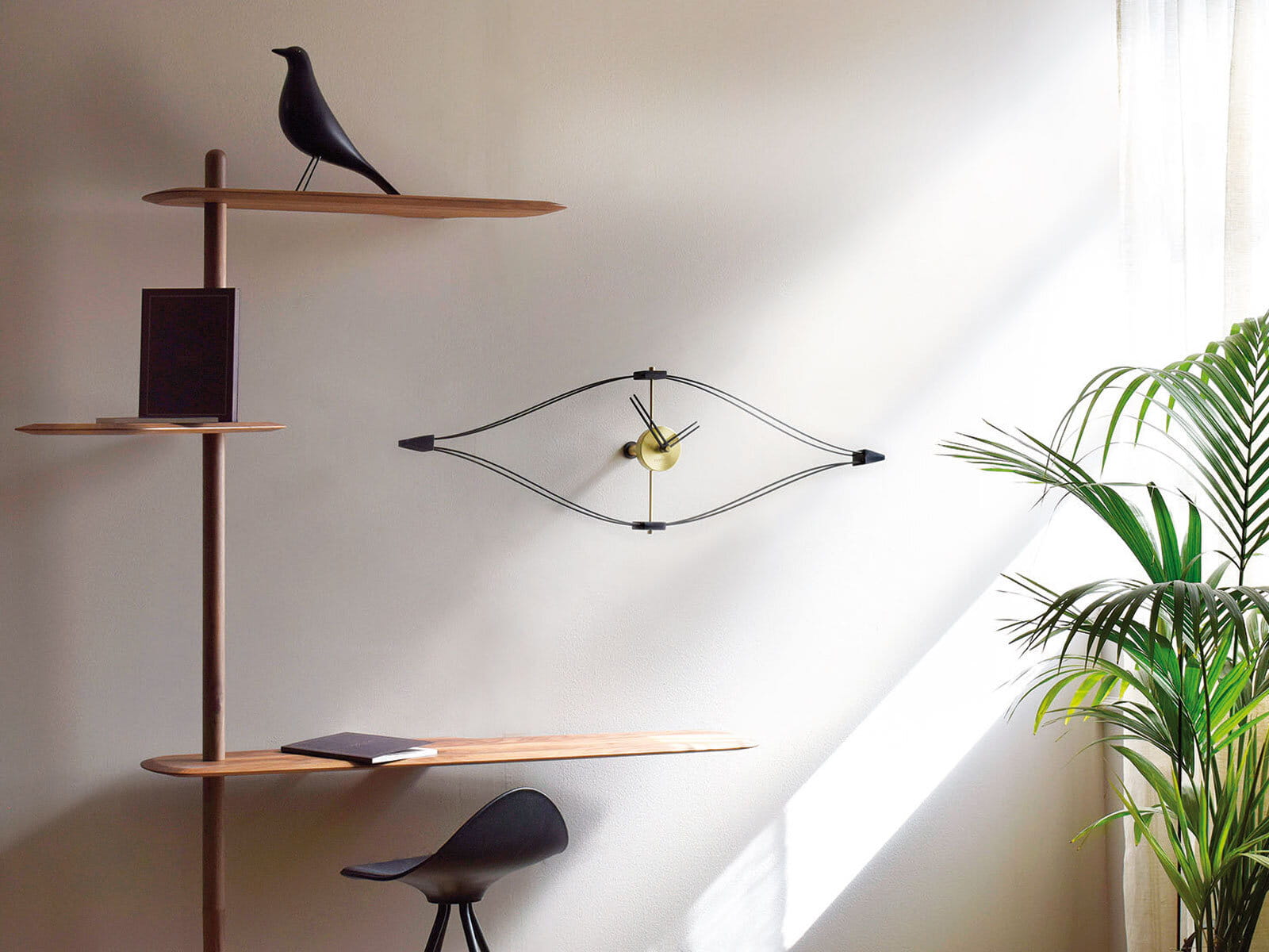 Designerski zegar Look Nomon . połączenie drewna orzechowego i stali. Ciekawa forma zegara - kształt oka - dodaje mu dodatkowej oryginalności.