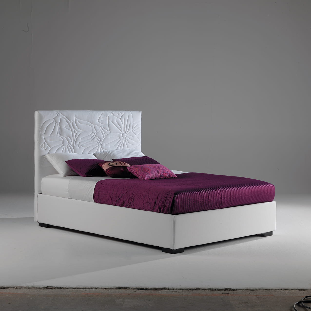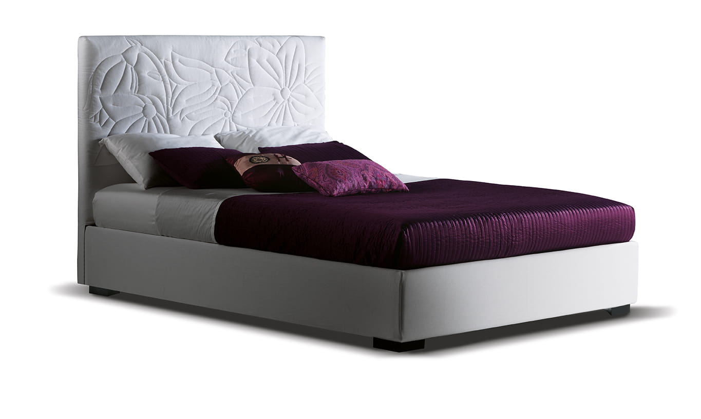 Łóżko Mauritius włoskiego producenta Milano Bedding - wyróżnia się pikowanym kwiatowym wzorem na wezgłowiu. Łóżko Mauritius jest dostępny ze stałym stelażem z listewek lub z dwoma wariantami przechowywania, jednym ze zwykłym schowkiem umieszczonym pod materacem lub z „Schowkiem Komodo”, który oprócz zwykłego schowka zawiera praktyczny system podnoszący stelaż z listewek i materac, aby ułatwić dopasowanie pościeli.