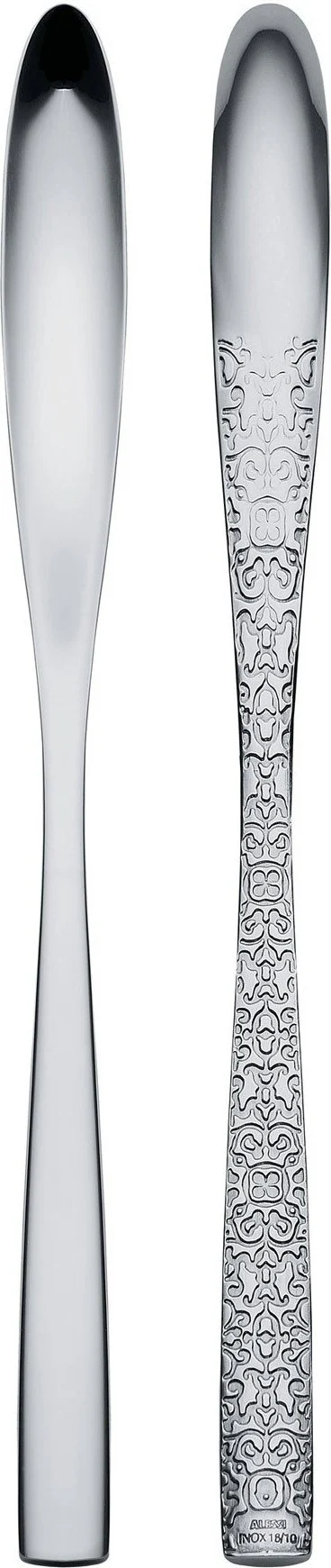 W skład kolekcji wchodzą porcelanowa zastawa stołowa, tace, kieliszki, garnki, a także wyrafinowane sztućce. Prezentowana łyżeczka do latte, wykonana z polerowanej stali nierdzewnej 18/10, jest częścią dedykowanej kolekcji Dressed do codziennych, ale wyjątkowych śniadań. Jej niecodzienna, bogata forma oraz charakterystyczny, rzeźbiony uchwyt doskonale komponują się z designem pozostałych elementów serii, tworząc elegancki i harmonijny zestaw do parzenia i podawania latte w stylu.
