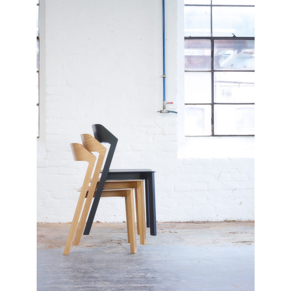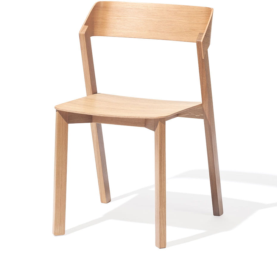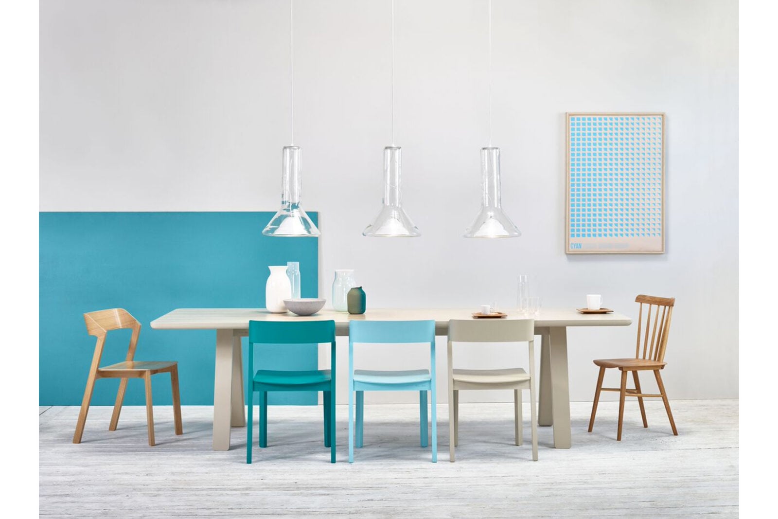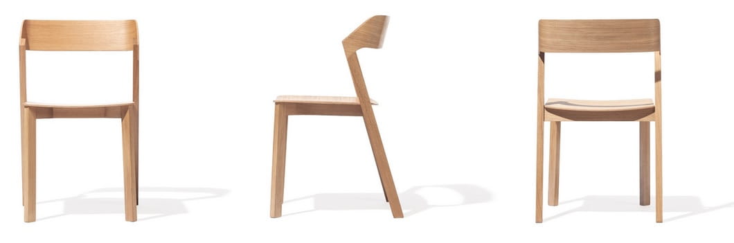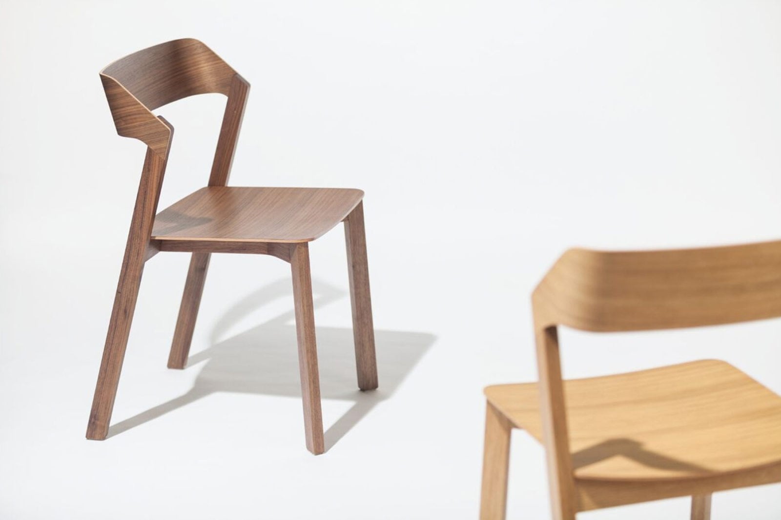 Nowoczesne krzesła, z naturalnym wykończeniem, zaprojektowane przez młodego włoskiego projektanta mieszkającego w Austrii – Alexa Guflera, noszą nazwę jego rodzinnego miasta Merano, włoskiego kurortu wellness.