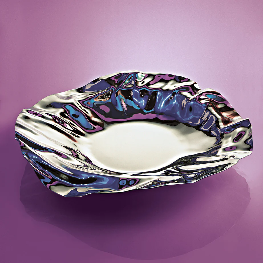 Wykonana z najwyższej jakości stali nierdzewnej 18/10, misa zachwyca wyrazistymi liniami oraz nieregularnie powyginanymi krawędziami, które nie tylko przyciągają wzrok, ale też pięknie odbijają światło. Jej precyzyjne wykonanie gwarantuje trwałość, estetykę oraz odporność na uszkodzenia.