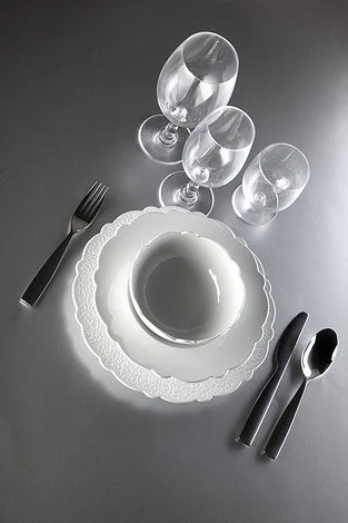 Do kolekcji Dressed należą: naczynia, serwis do kawy i herbaty, kryształowe kieliszki, stalowe sztućce dekorowane techniką wykuwania, taca, podstawka pod talerz oraz podstawki pod szklanki i butelki wykonane ze stali nierdzewnej 18/10.