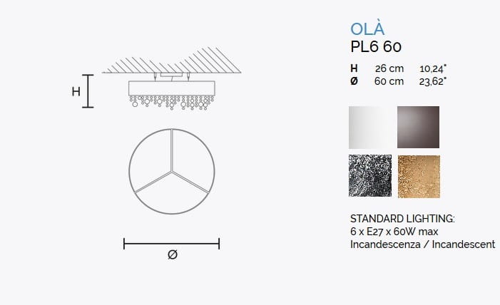 Ola lampa włoskiej marki Masiero. Lampa wisząca to kolejna odsłona projektu Ola włoskiej marki Masiero. Sporych rozmiarów lampa nie tylko znakomicie oświetli pomieszczenie, zapewniając komfortowe warunki oświetleniowe, ale także nada mu niebanalny charakter, ponieważ produkt wyróżnia się oryginalnym i subtelnym designem. Metalowa obręcz malowana na różne kolory, środek lampy wypełniają piękne połyskujące szkiełka malowane na różne kolory. Lampa przepięknie mieni się po zapaleniu.