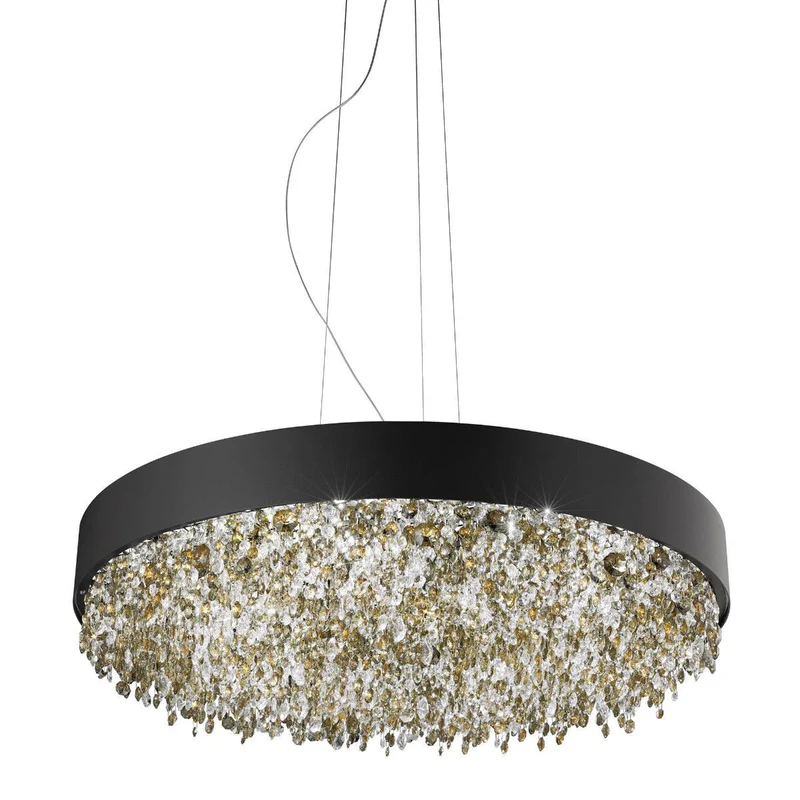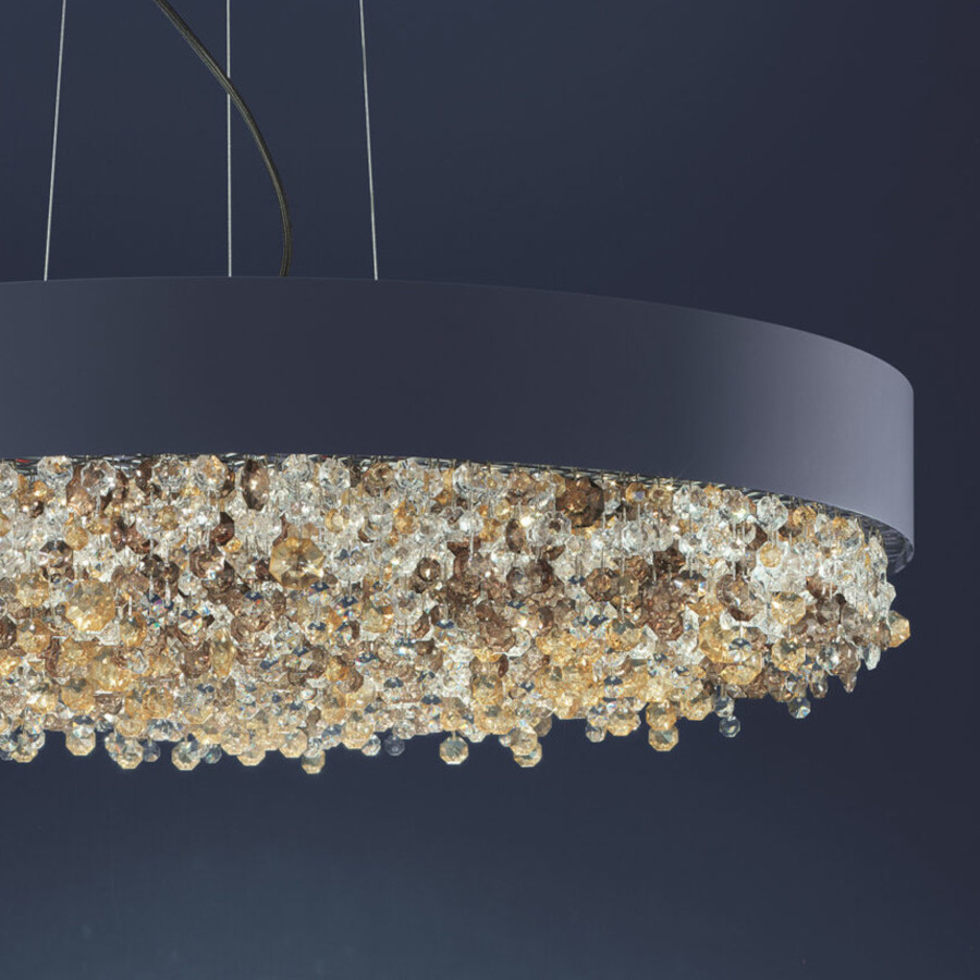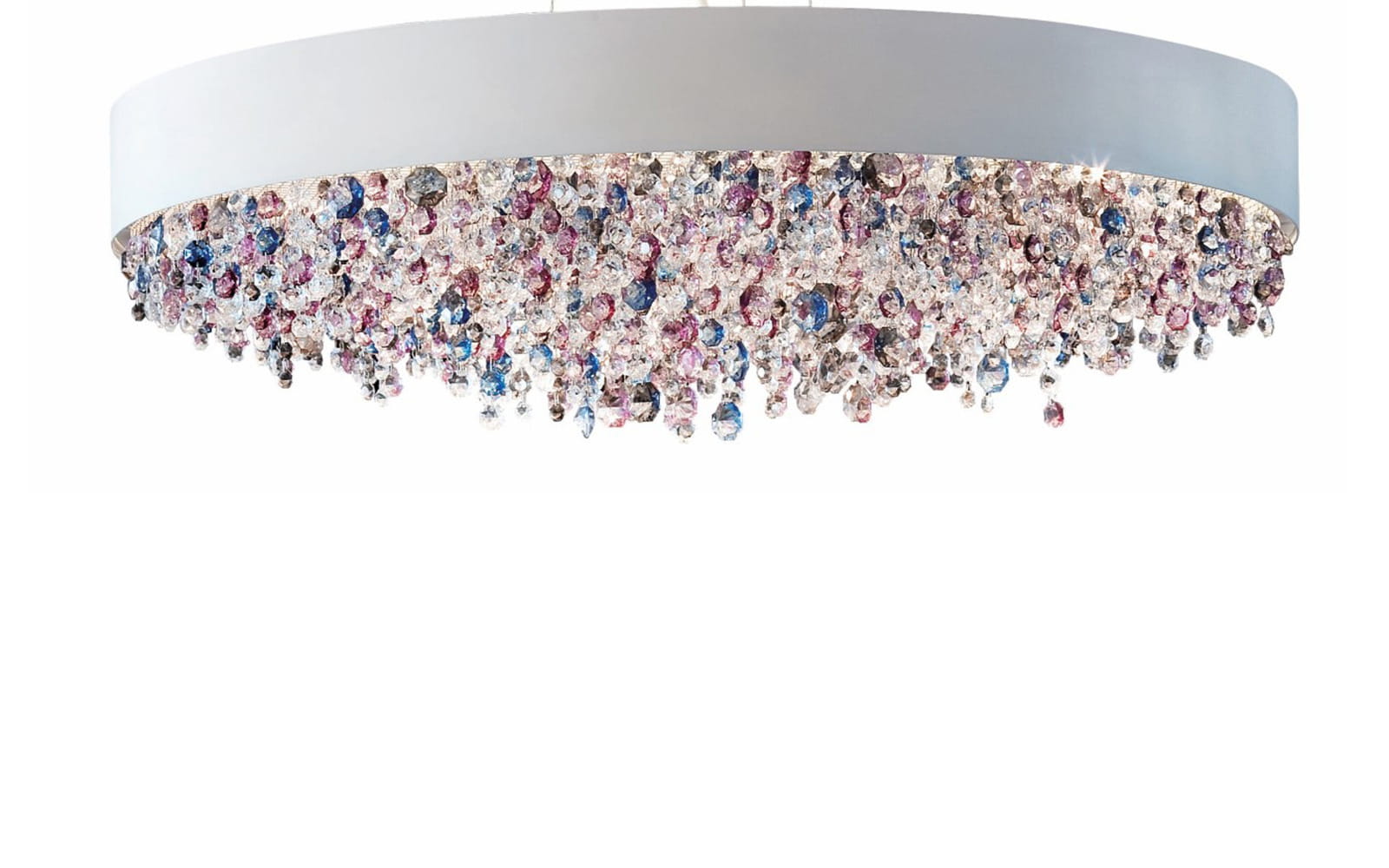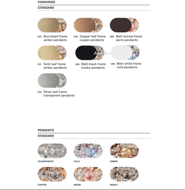 Lampa została wykonana przy użyciu metalu oraz szklanych kryształków. Dostępna jest w różnych odsłonach kolorystycznych.