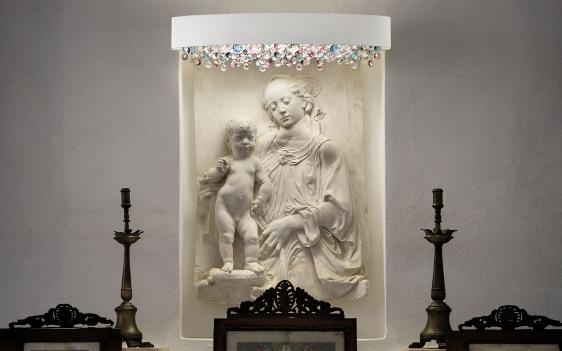 O wyjątkowości kinkietu Ola Masiero decydują przede wszystkim szklane kryształy, umieszczone w jego dolnej części. Nadają mu one nie tylko elegancki wygląd, ale dodatkowo efektownie odbijają światło i rzucają barwne odbłyski.