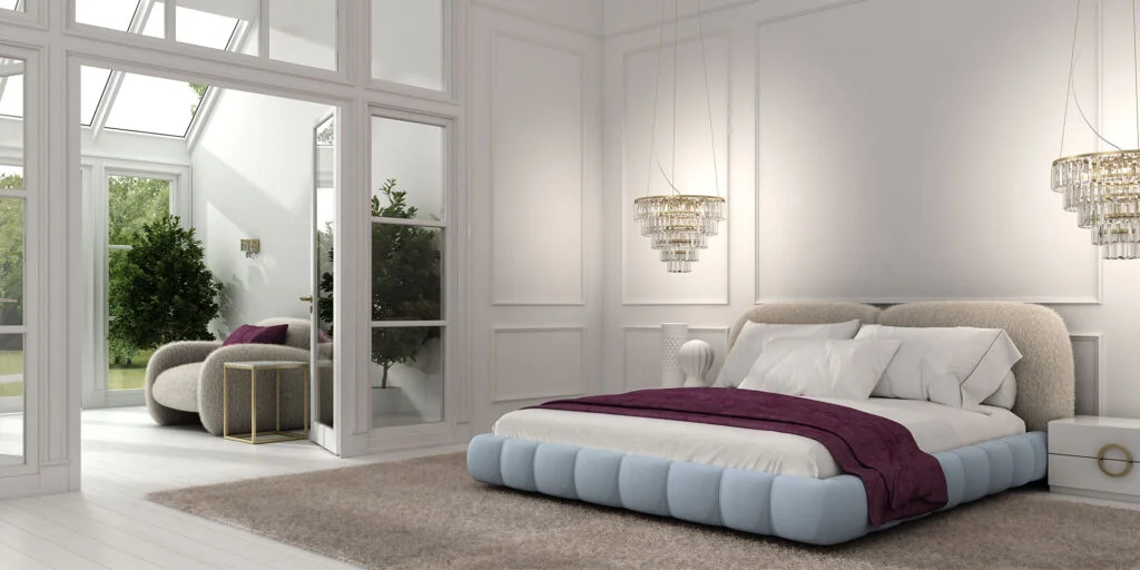 Jednocześnie materiały te, razem z miękkimi krągłościami, sprawiają, że mebel wygląda na niezwykle wygodny. W rezultacie trudno oprzeć się pokusie zanurzenia się w łóżku i oddania się błogiemu relaksowi.