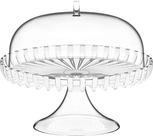 Wyposażony w przezroczystą kopułę typu „stay-fresh”, skutecznie chroni zawartość przed kurzem i zanieczyszczeniami, jednocześnie eksponując jej walory wizualne. Stabilna konstrukcja oraz wygodna forma zapewniają komfort użytkowania zarówno na co dzień, jak i podczas przyjęć.