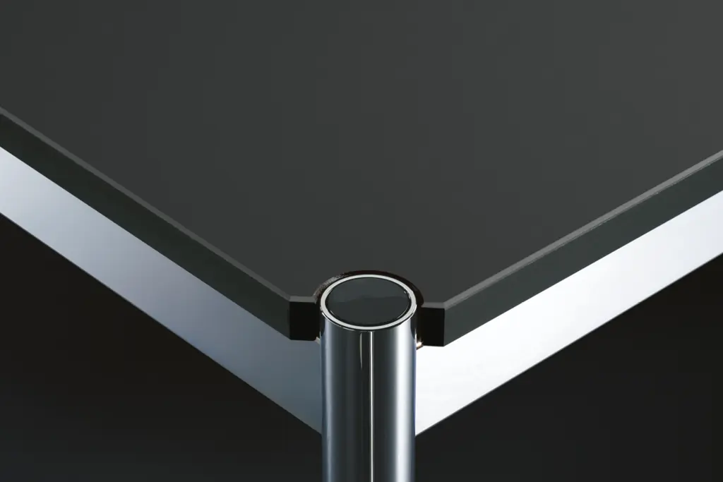 Biurko wyróżnia się chromowaną ramą oraz smukłymi, okrągłymi nogami, które nadają konstrukcji wizualnej lekkości i nowoczesnego charakteru. Minimalistyczna forma sprawia, że mebel staje się centralnym, ale nienachalnym elementem aranżacji wnętrza.