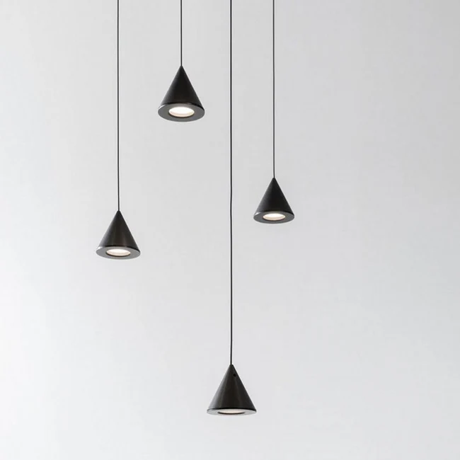 Kolekcja Filomena to wyjątkowa interpretacja światła, oparta na prostym, a zarazem wyrazistym motywie niewielkiego stożka, z którego kabel swobodnie „wspina się” po ścianach i suficie. Tworzy to harmonijną, lekką kompozycję o wyrafinowanym, nowoczesnym charakterze, idealnie wpisującą się w współczesne aranżacje wnętrz.