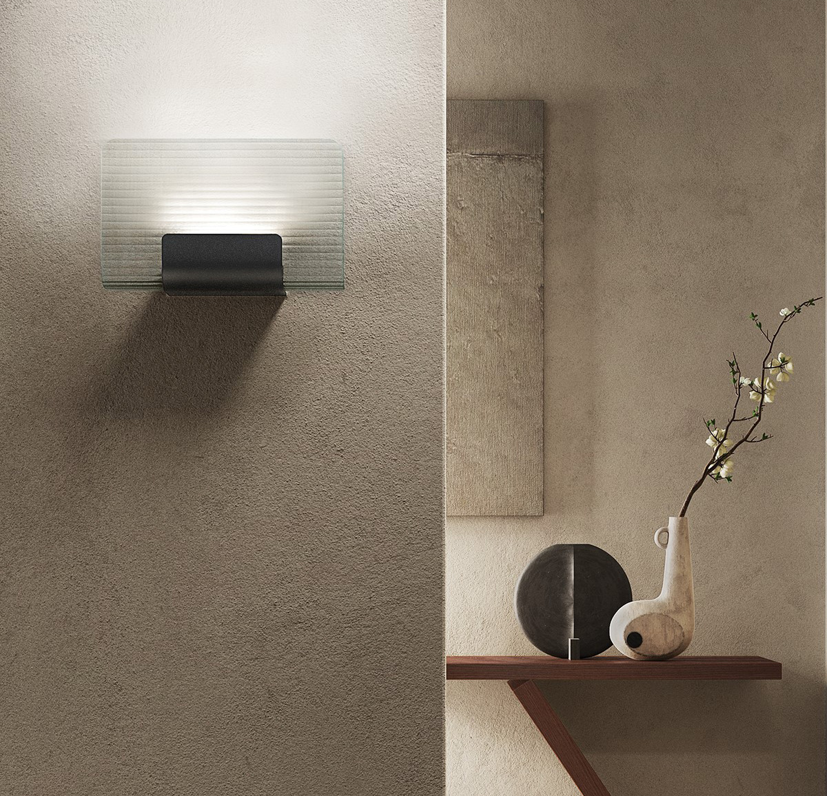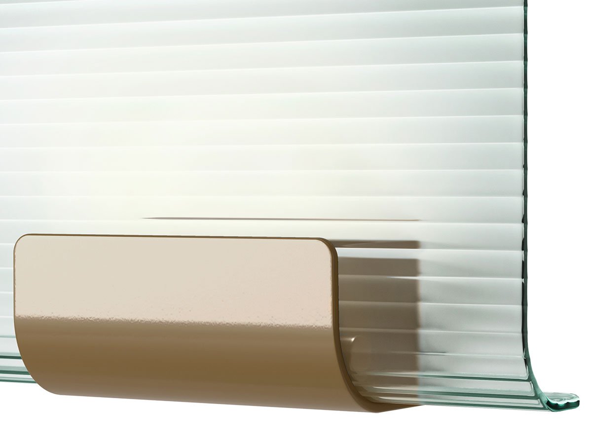 Starannie zaprojektowane rowki w szklanej strukturze pozwalają wydobyć bogactwo świetlnych refrakcji. Światło załamuje się i rozprasza, tworząc wielowymiarową grę refleksów, która zmienia się wraz z perspektywą i kątem patrzenia. Nami – co po japońsku oznacza „falę” – przywołuje na myśl migotanie morskiej tafli, oddając jej rytm i lekkość w nowoczesnej, architektonicznej interpretacji.