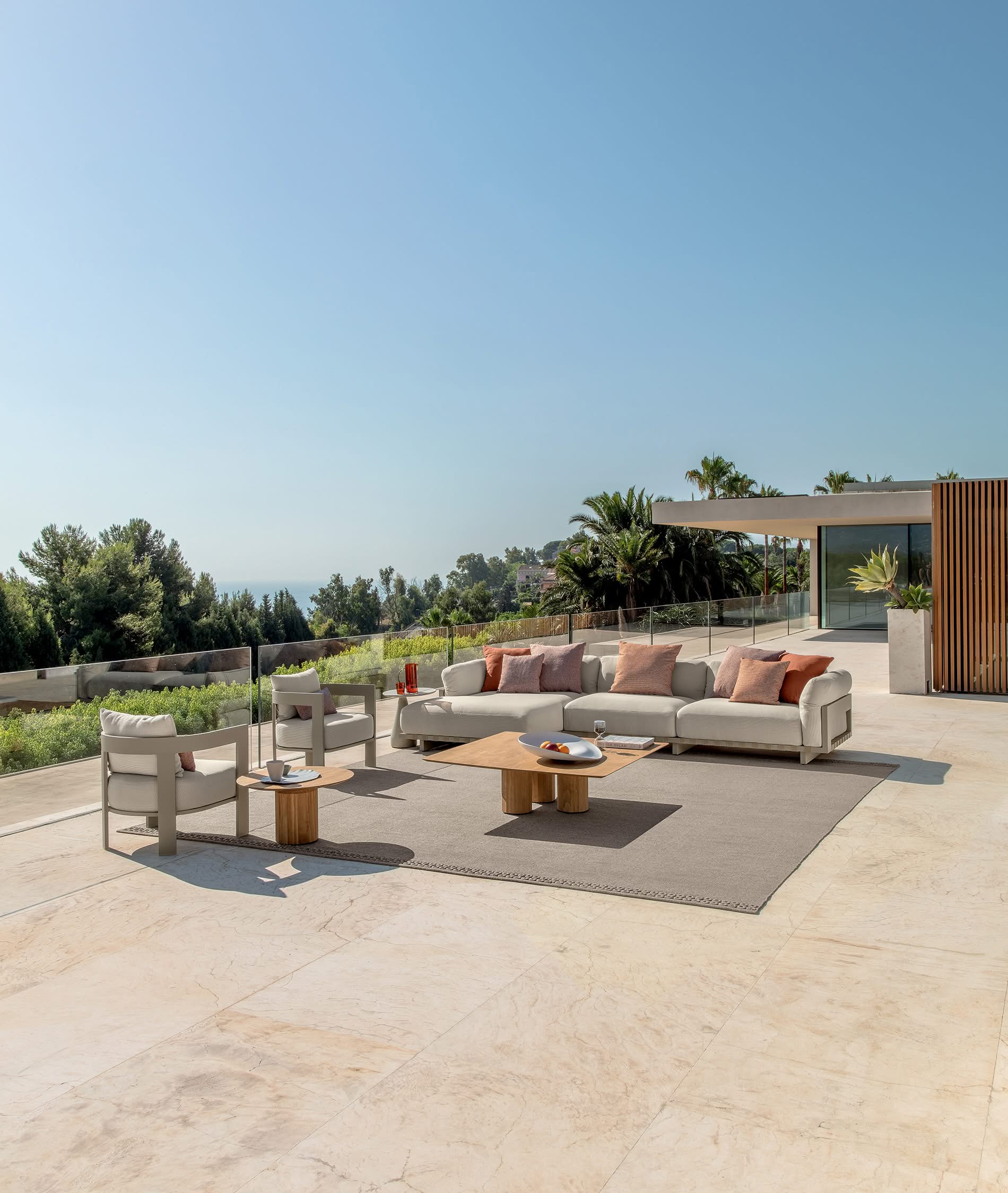 Stolik kawowy Argo Alu o wymiarach 113 × 80 cm to elegancka propozycja do luksusowych przestrzeni outdoor, w której minimalistyczna forma spotyka się z wyrafinowanymi materiałami. Prostokątna bryła nadaje aranżacji harmonii i architektonicznej równowagi, doskonale komponując się z sofą oraz fotelami z kolekcji Argo.