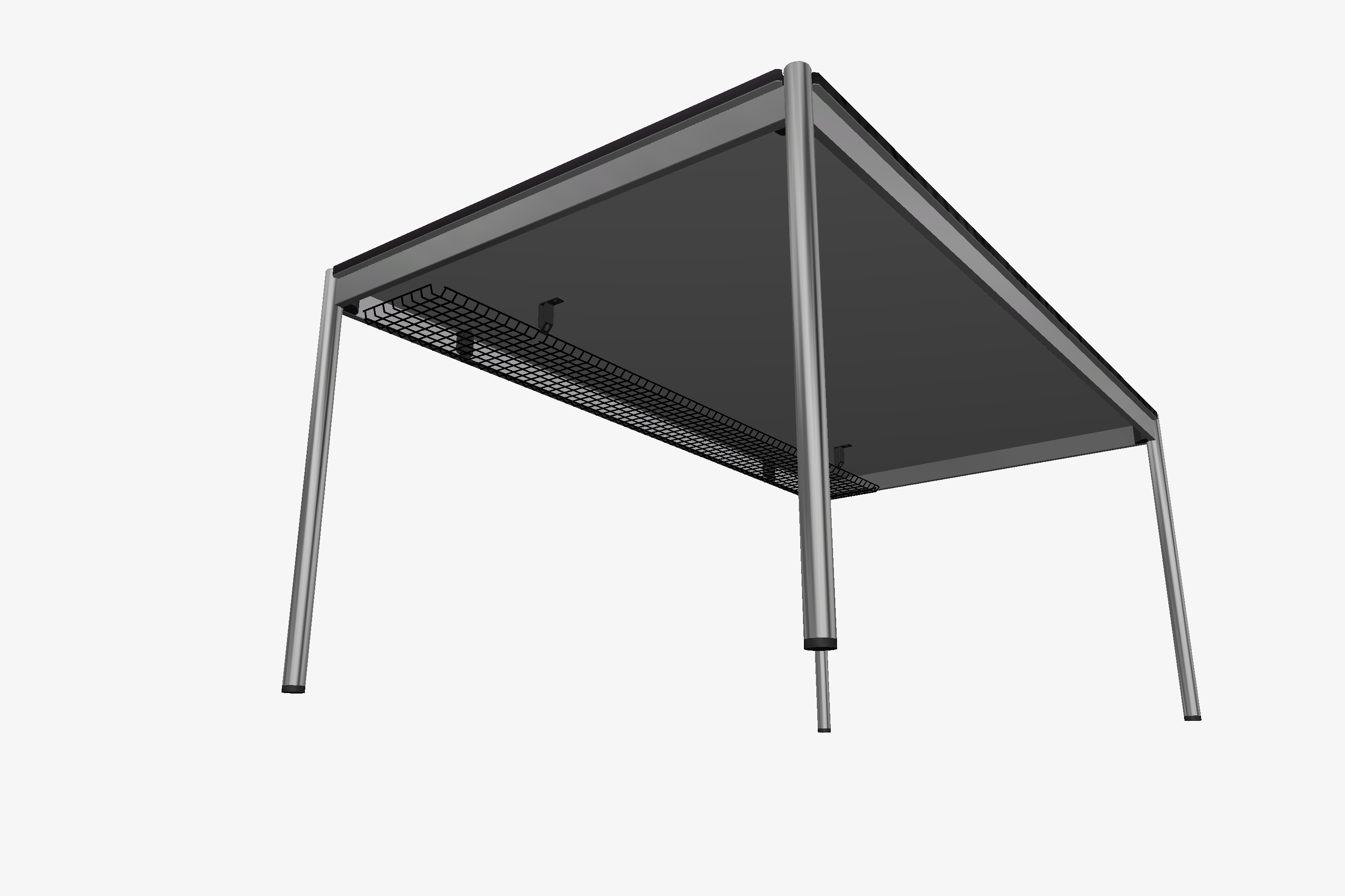 Siatka umożliwia wygodną organizację i przechowywanie kabli, listw zasilających oraz innych akcesoriów, pomagając utrzymać porządek na stanowisku pracy. To funkcjonalne rozwiązanie, które doskonale wpisuje się w minimalistyczną estetykę systemu USM Haller, zwiększając komfort i ergonomię użytkowania stołu.