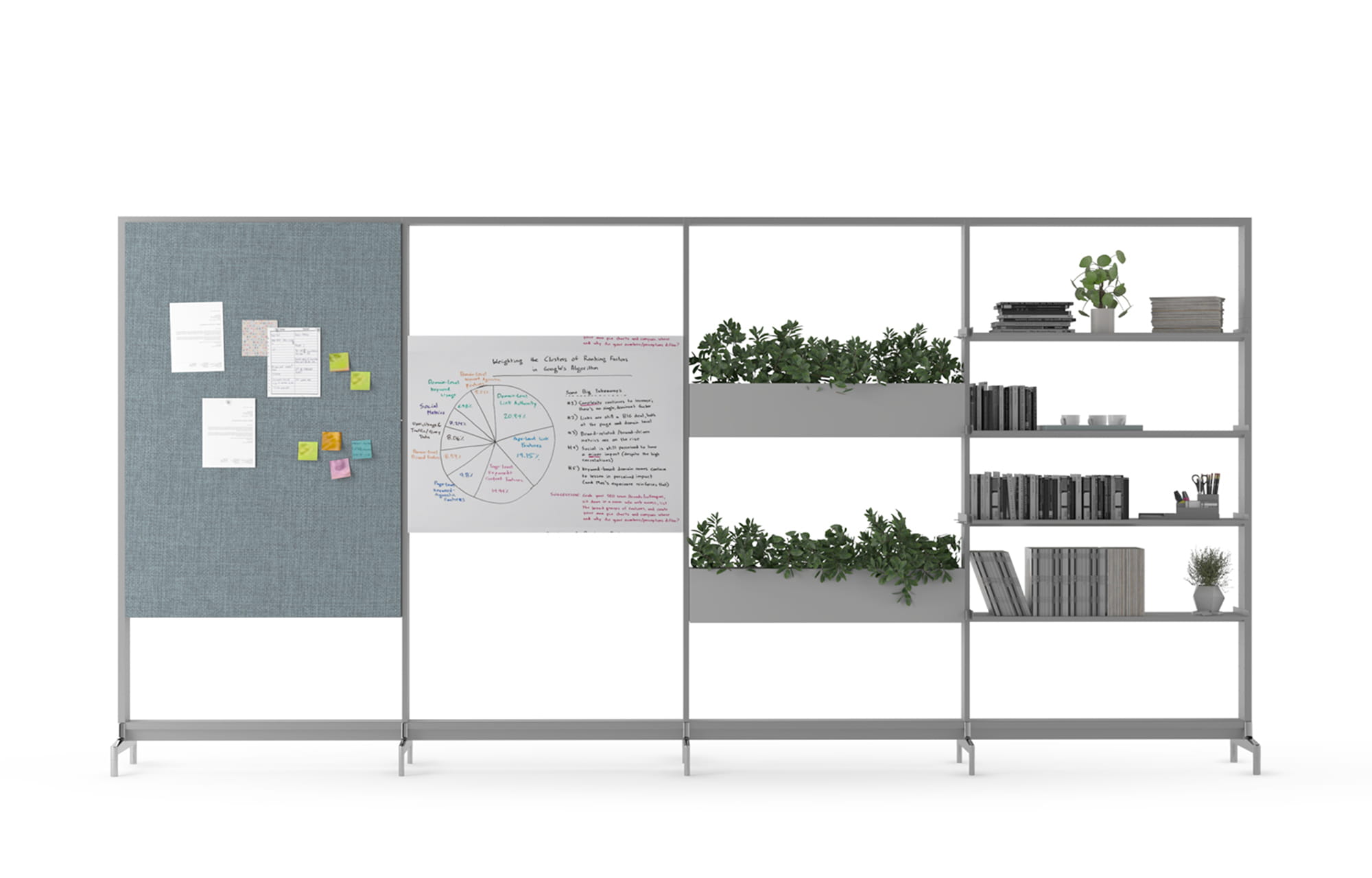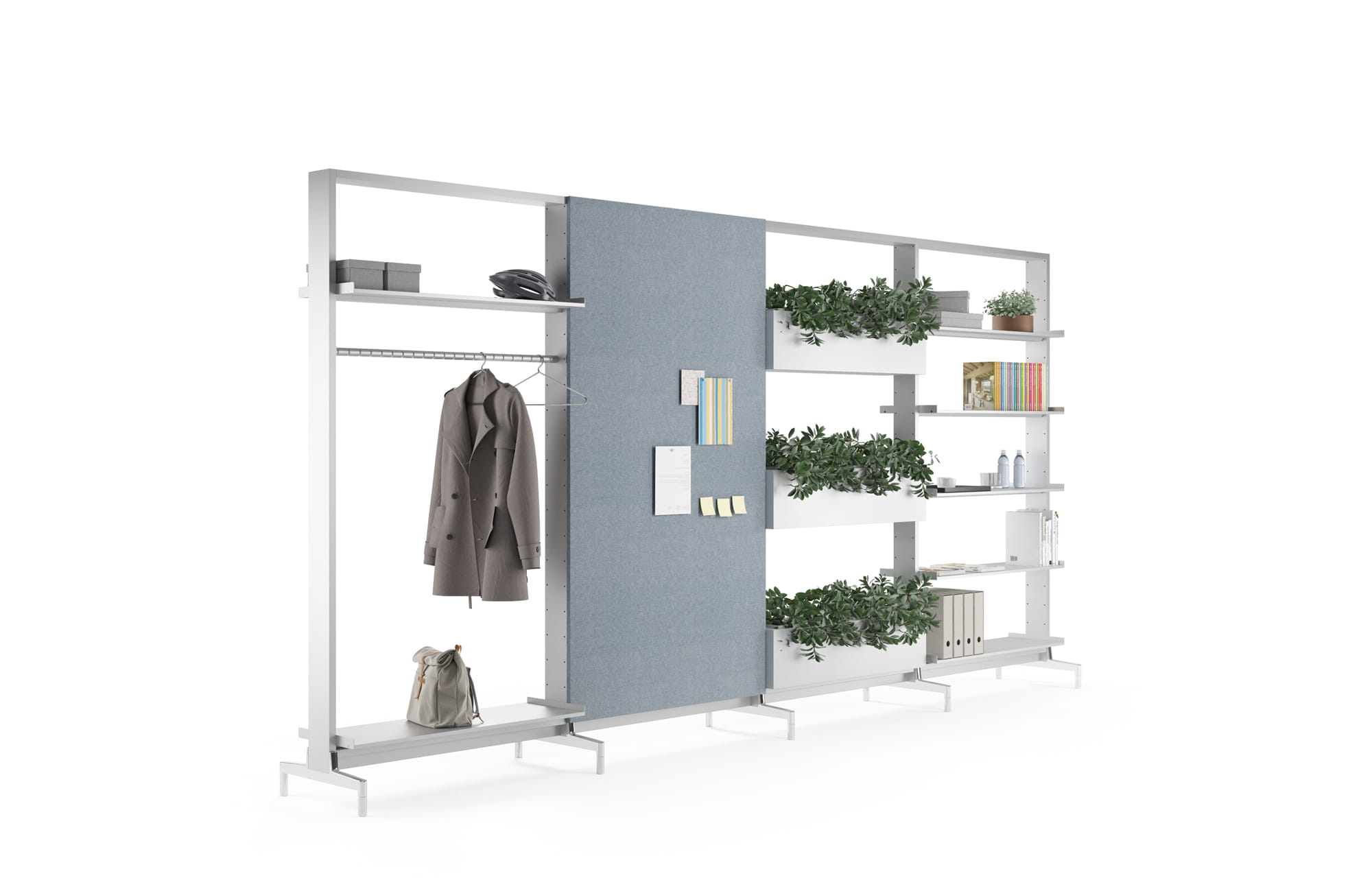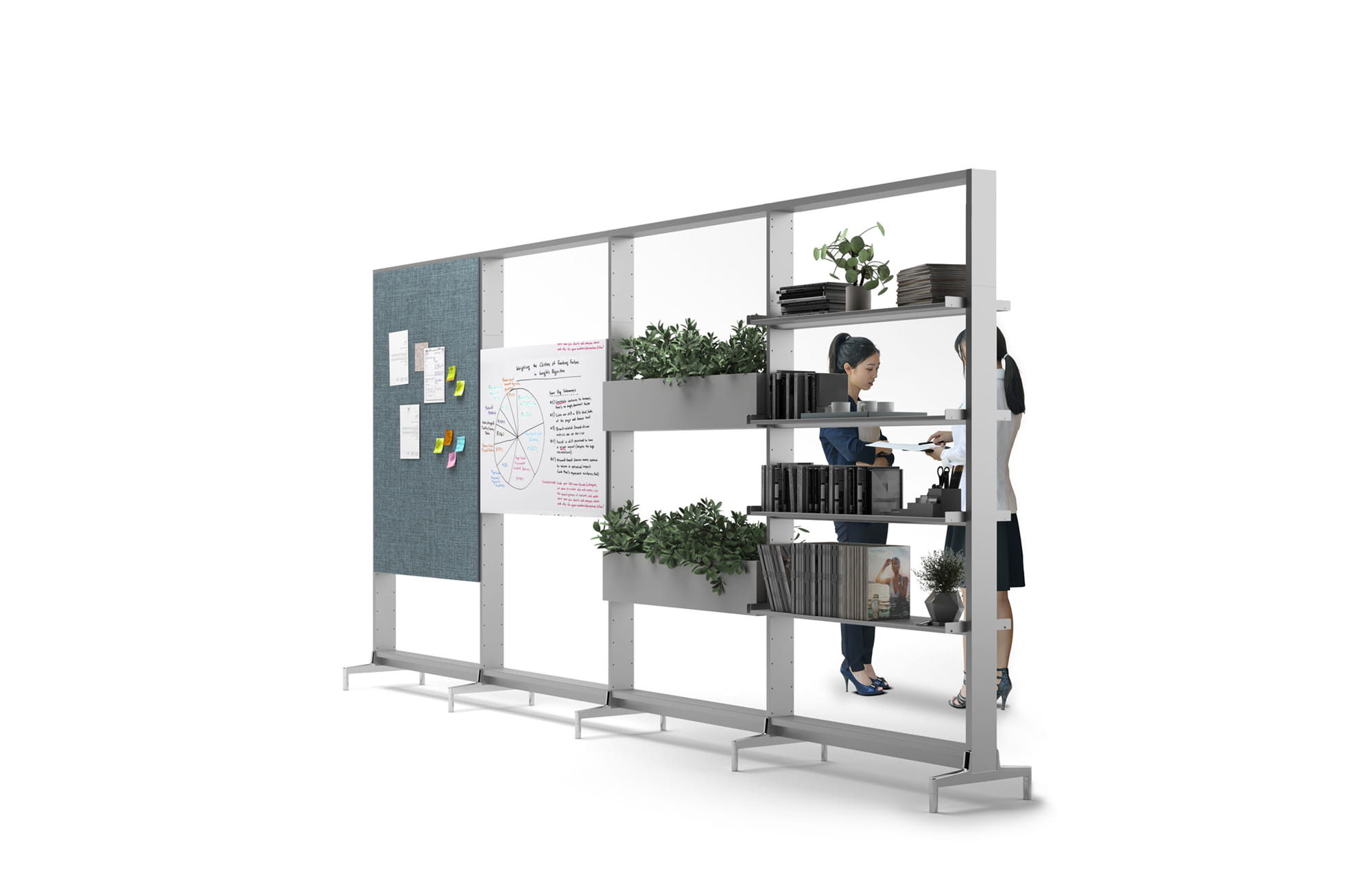 Modułowa rama wykonana z profilu aluminiowego, zapewniająca solidność i łatwość w montażu. Jest to konstrukcja elastyczna, umożliwiająca różnorodne konfiguracje, idealna do dynamicznych przestrzeni.
