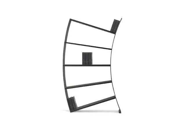Wykonany z czarnego, anodyzowanego aluminium, zachwyca lekkością wizualną, trwałością i perfekcyjnym wykończeniem. Smukła konstrukcja o wymiarach 120 × 30 × 200 cm pozwala na efektowną ekspozycję książek i dekoracji – zarówno przy ścianie, jak i w centralnej części wnętrza.