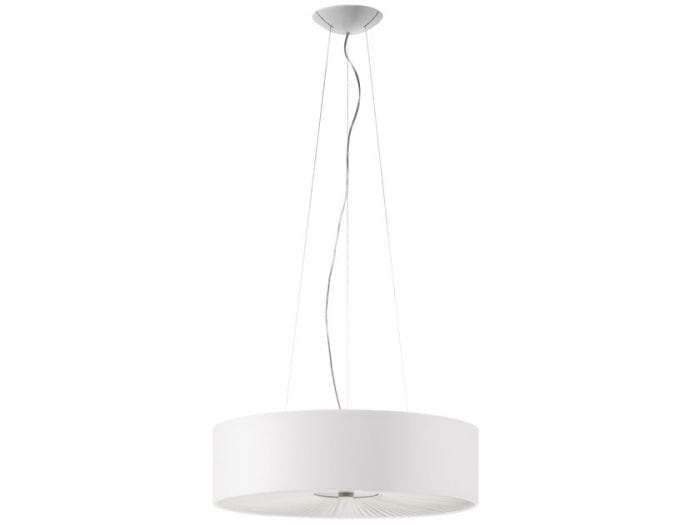 Skin od Axo Light Skin to designerski żyrandol z dużym, cylindrycznym kloszem, który przyciąga uwagę elegancką formą i wyrafinowanymi detalami. Obicie wykonane jest z ognioodpornej ekoskóry i dostępne w różnych wykończeniach, co pozwala dopasować lampę do wielu stylów wnętrz. Dolna część dyfuzora zamknięta jest tkaniną typu pongee o plisowanej strukturze – to charakterystyczny element, który dodaje lampie lekkości i wyjątkowego uroku.