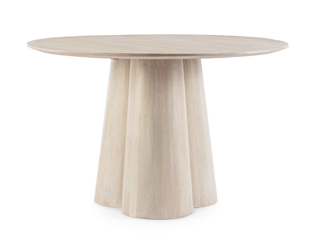 Okrągły stół Nassor to wyjątkowy mebel, który zachwyca swoim minimalistycznym designem i wysoką jakością wykonania. Wykonany z drewna mango z subtelnym nitrocelulozowym wykończeniem, prezentuje się nie tylko elegancko, ale także naturalnie, wprowadzając do pomieszczenia ciepło i przytulność.