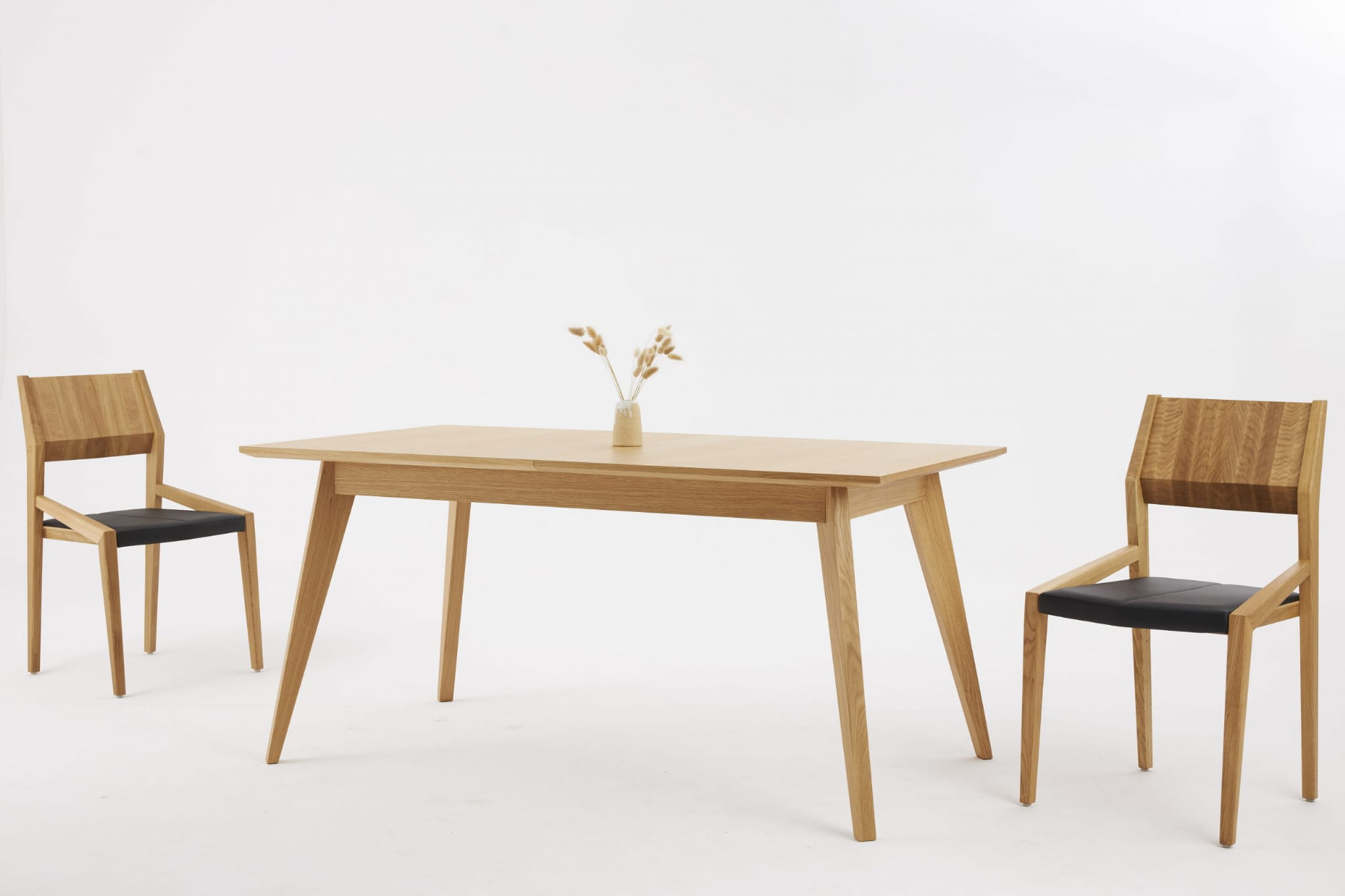 Elegancki i funkcjonalny stół rozkładany, idealny do jadalni lub salonu. Blat wykonany został z wysokiej jakości okleiny naturalnej dębowej, która podkreśla szlachetny charakter mebla i eksponuje naturalne usłojenie drewna. Nogi oraz oskrzynia zostały wykonane z litego drewna dębowego, co gwarantuje stabilność i trwałość na lata.