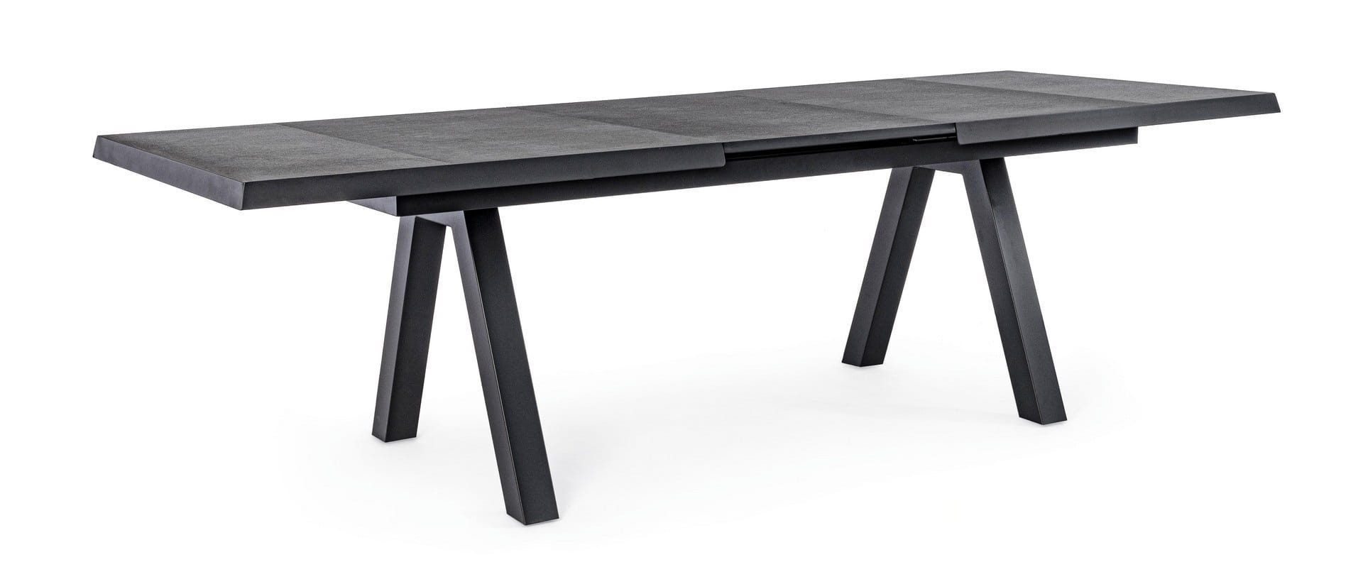 Stół z aluminiową ramą, malowaną proszkowo (poliestr), z ceramicznym blatem o grubości 10 mm. Posiada automatyczne rozszerzenie, co zapewnia wygodę i funkcjonalność. Śruby wykonane ze stali nierdzewnej gwarantują trwałość i odporność na korozję. Dodatkowo, stół wyposażony jest w regulowane nóżki, które pozwalają na dostosowanie wysokości. Nogi wymagają montażu. Idealny do użytku na zewnątrz lub w przestrzeni ogrodowej, łącząc nowoczesny design z wytrzymałością.