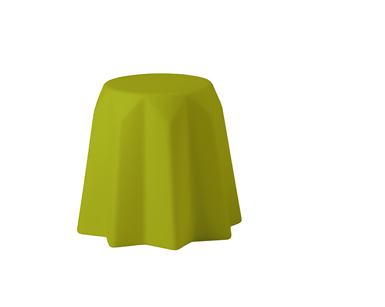 Stołek wykonany jest w całości z recyklingowalnego polietylenu, formowanego techniką rotomouldingu, co gwarantuje trwałość, lekkość oraz odporność na warunki atmosferyczne. Dostępny w szerokiej gamie standardowych wykończeń o delikatnie chropowatej fakturze oraz w efektownym metalizowanym kolorze złotym. Ośmiokątna podstawa zapewnia wysoką stabilność, a niska waga ułatwia swobodne przestawianie mebla.