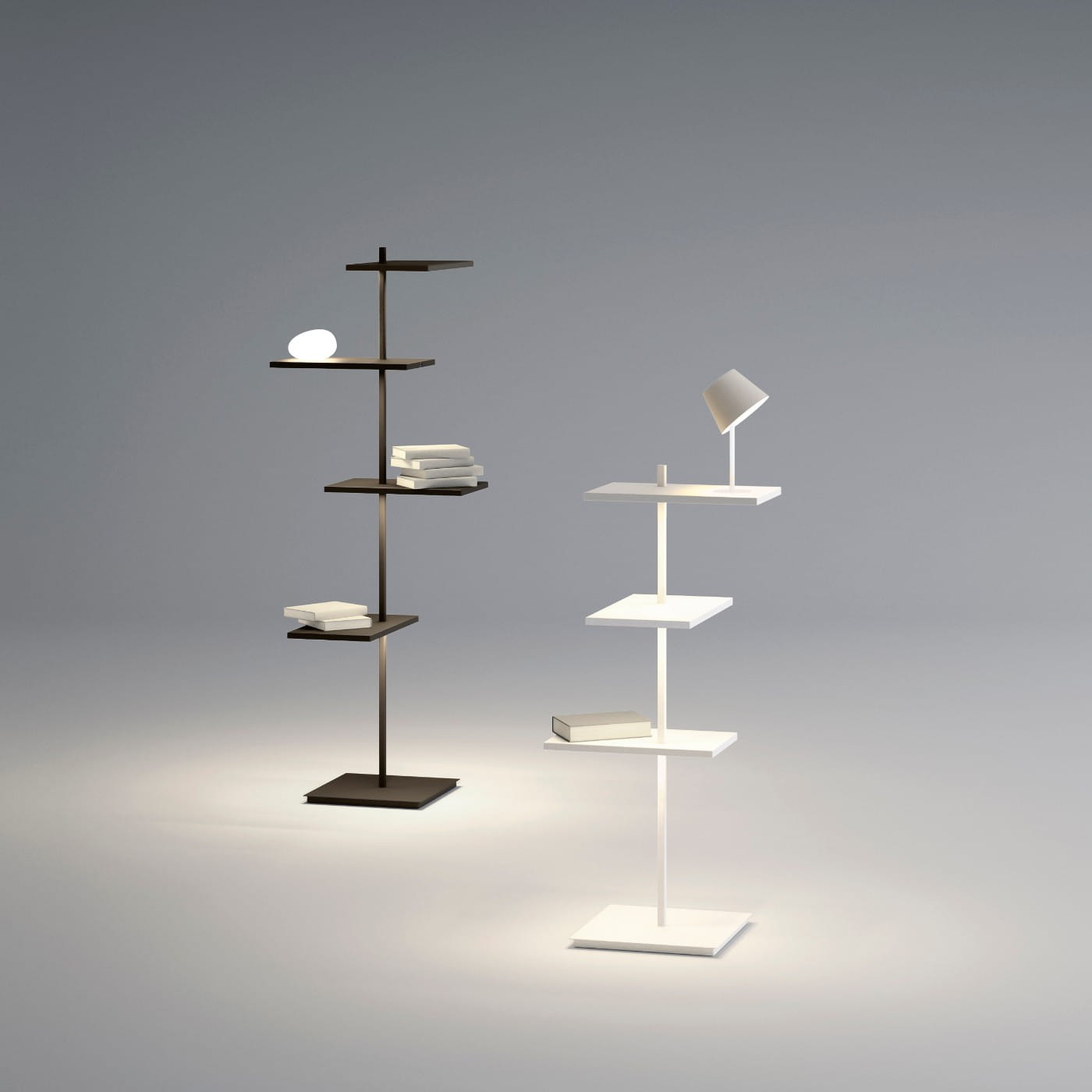 Lampy podłogowe Suite Vibia , stworzone przez projektantów Jordiego Vilardella i Meritxell Vidal, stanowią innowacyjne połączenie funkcji oświetleniowej i meblowej. Te wyjątkowe lampy nie tylko pełnią rolę źródła światła, ale także spełniają funkcję praktycznego mebla. Ich unikalny moduł do przechowywania wyposażony jest w różnorodne półki, ustawione pionowo na różnych poziomach i skierowane w różne kierunki, co zapewnia ciekawą organizację przestrzeni.