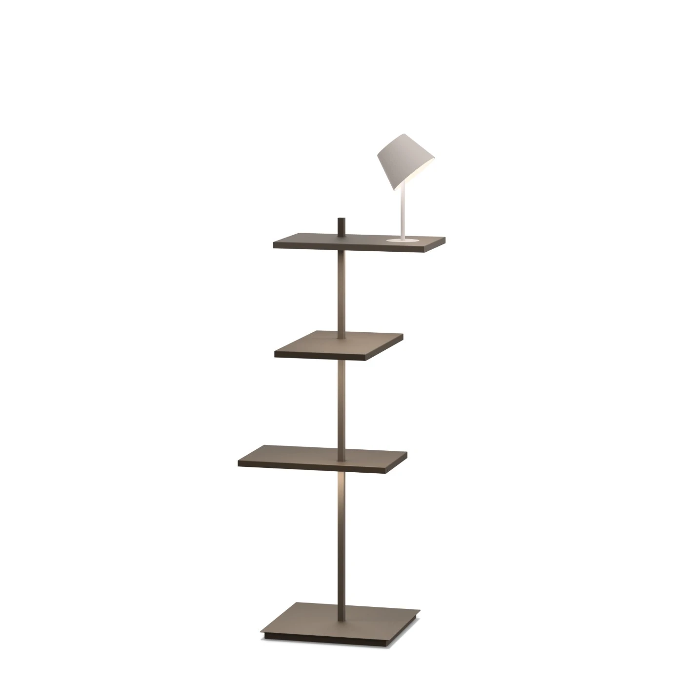 Źródło światła to nowoczesna dioda LED ukryta pod półkami, co pozwala na wybór kilku wariantów oświetlenia. Dzięki temu użytkownik może korzystać z ogólnego, otaczającego światła emitowanego przez główny element oświetleniowy, jak również skorzystać z dodatkowej lampki do czytania, co sprawia, że lampa podłogowa Suite jest nie tylko estetycznym, lecz także funkcjonalnym dodatkiem do każdego wnętrza.