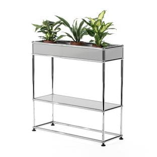 Nowoczesny stolik boczny USM Haller model A to idealne rozwiązanie dla miłośników zieleni i stylowych wnętrz. Zaprojektowany z myślą o tworzeniu przytulnej, miejskiej dżungli, oferuje dużo miejsca na wyeksponowanie ulubionych roślin w wyjątkowy sposób. Dzięki wbudowanej skrzynce na rośliny, stolik nie tylko pełni funkcję dekoracyjną, ale również praktyczną – świetnie sprawdza się jako przegroda pomieszczenia lub ekran zapewniający prywatność. Wyjątkowy design i precyzja wykonania w stylu USM Haller sprawiają, że stolik ten stanowi doskonałe połączenie estetyki z funkcjonalnością, wnosząc harmonię i zieleń do każdej przestrzeni.
