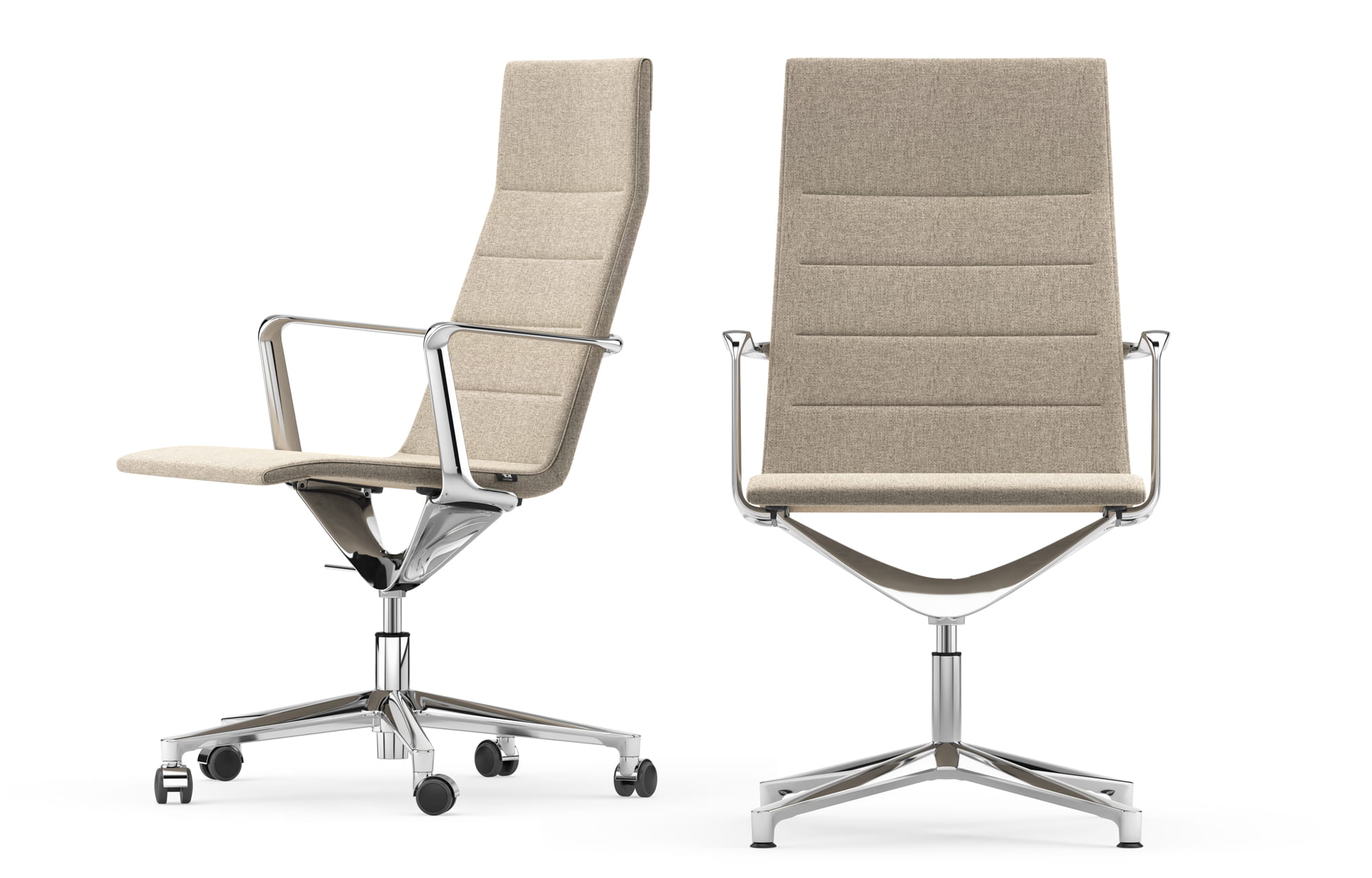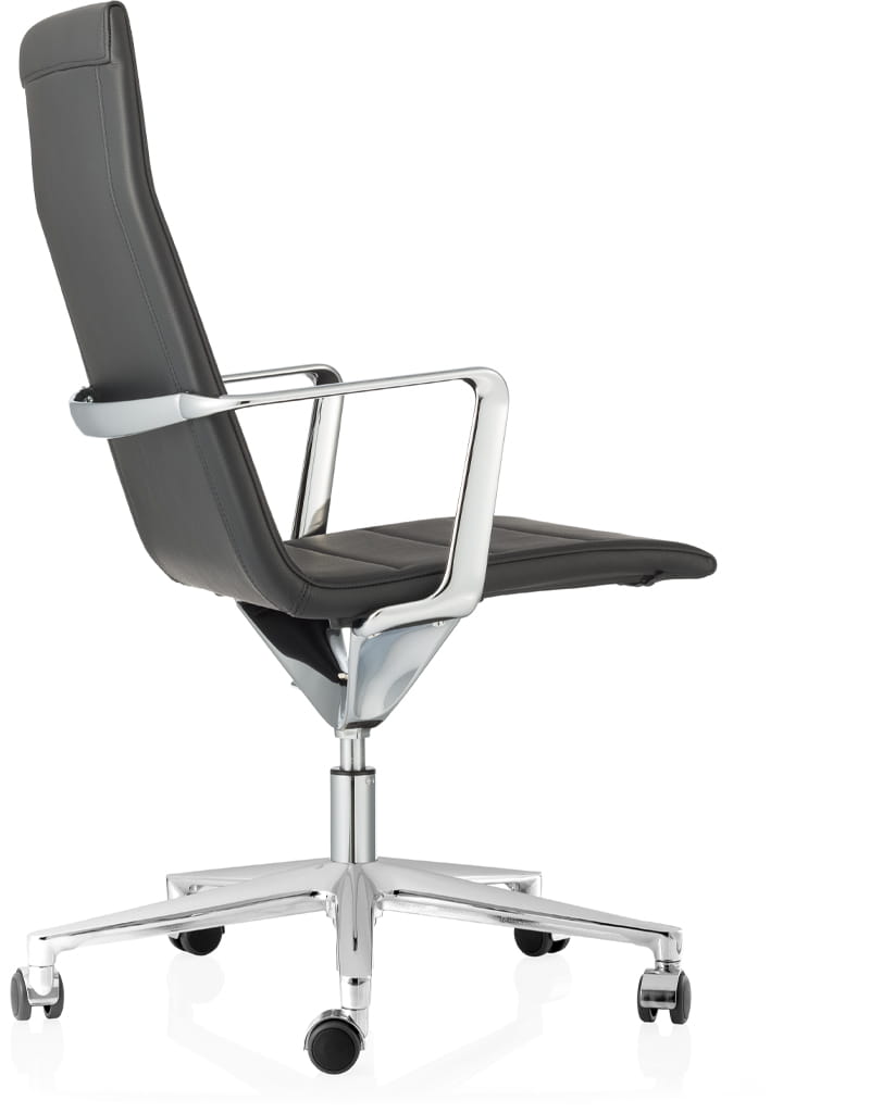 Rama z rur stalowych to solidna, sztywna konstrukcja, która zachowuje swój kształt nawet przy dużych naprężeniach. Elastyczne paski, rozciągnięte poprzecznie, równomiernie rozkładają ciężar ciała, zapewniając komfort i wsparcie. Wypełnienie z poliuretanu spienionego na zimno, o zmiennej grubości, dostosowuje się do kształtu ciała, gwarantując optymalną wygodę. Widoczne elementy nośne, wykonane z odlewanego ciśnieniowo aluminium, dostępne są w różnych wykończeniach – polerowanych, chromowanych lub malowanych, co podkreśla estetykę i trwałość konstrukcji. Siedzisko dostępne jest w trzech wersjach wysokości oparcia, umożliwiając dopasowanie do indywidualnych potrzeb użytkownika.